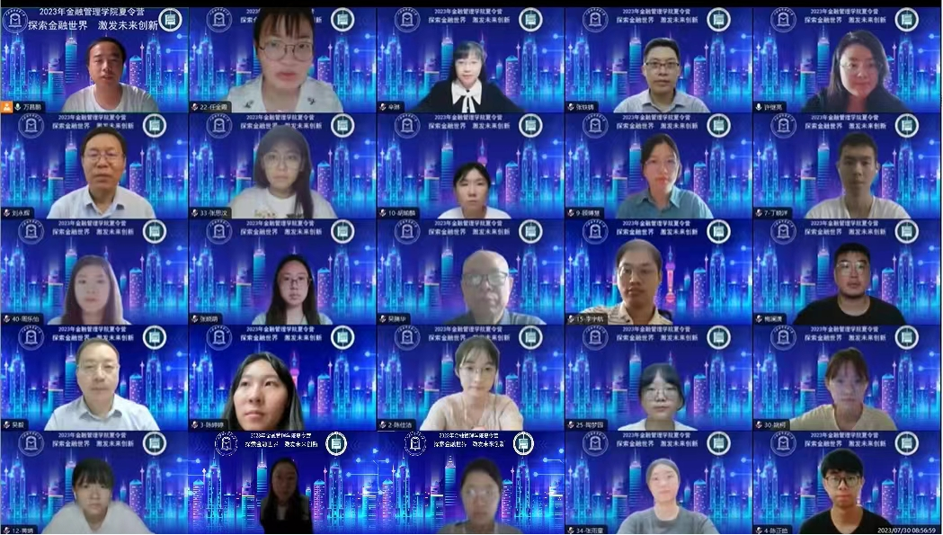 为促进高校金融大学生交流,鼓励优秀学子报考必赢626net入口首页金融管理学院深造,7月30日至7月31日,金融管理学院在线举办了以“探索金融世界,激发未来创新”为主题的2023年金融夏令营。校党委副书记吴毅、研究生院院长刘永辉出席开营仪式并致辞,金融管理学院领导班子成员、教授代表和杰出校友代表等参加开营仪式。开营仪式由学院党委书记许继亮主持。