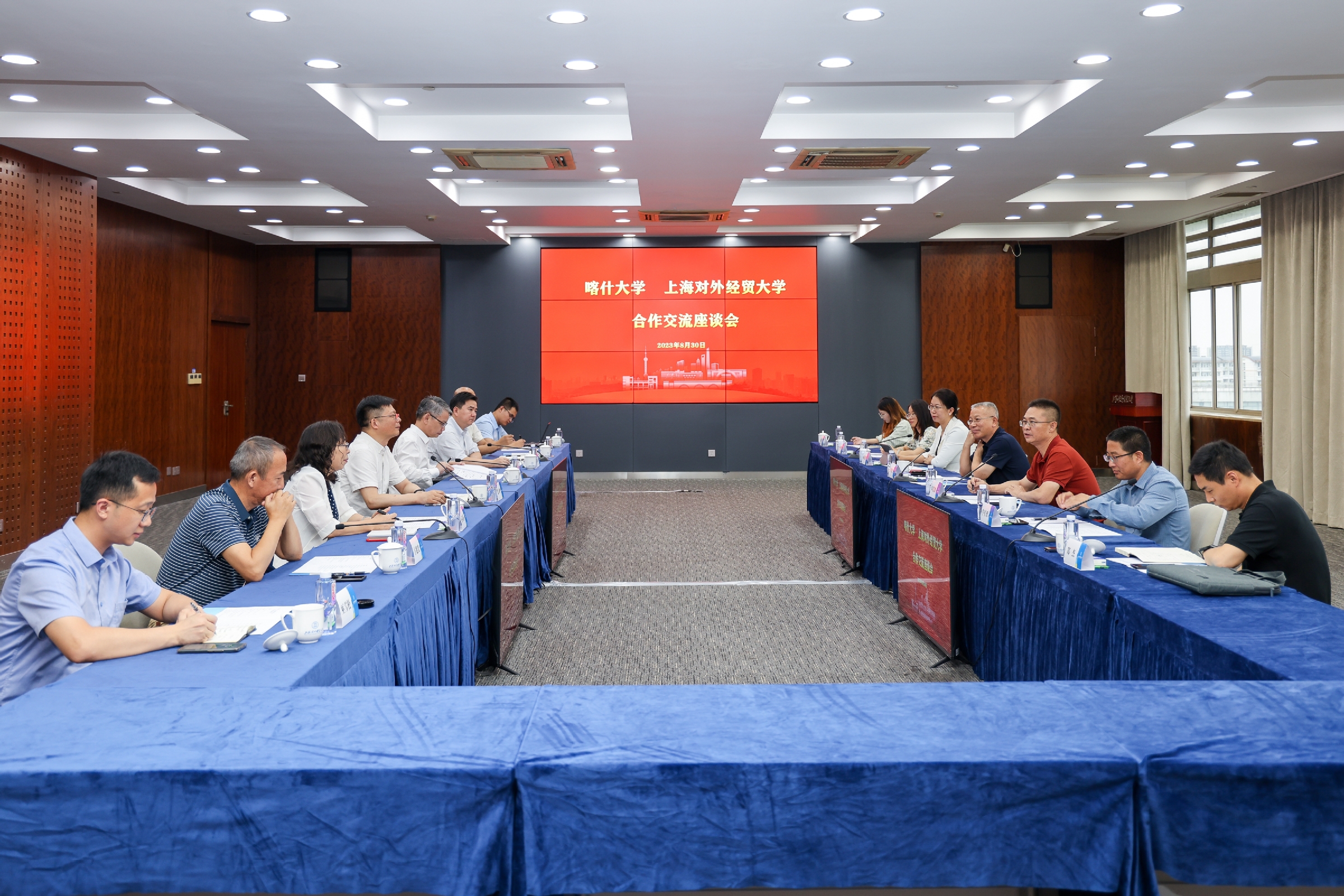 殷耀对丁邦文一行来访表示欢迎和感谢。他表示,喀什大学作为“一带一路”经济带重要节点城市上的大学,为新疆长治久安和社会发展作出了突出贡献,是上经贸大学习的榜样。他强调,上经贸大与喀大情谊深厚,合作前景广阔,都承担着服务国家战略、地方经济社会发展以及学校事业新发展的战略使命。当前,学校紧跟科技演进和产业发展态势,不断优化学科专业布局,推动数字化转型赋能学科专业发展,推进产教融合深度融入行业发展。希望双方在新征程上携手共进,开展长期、全面和深度的合作。