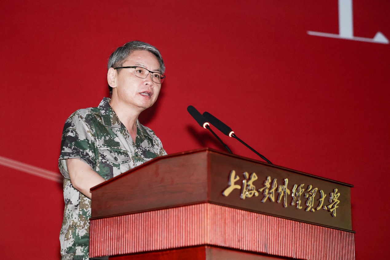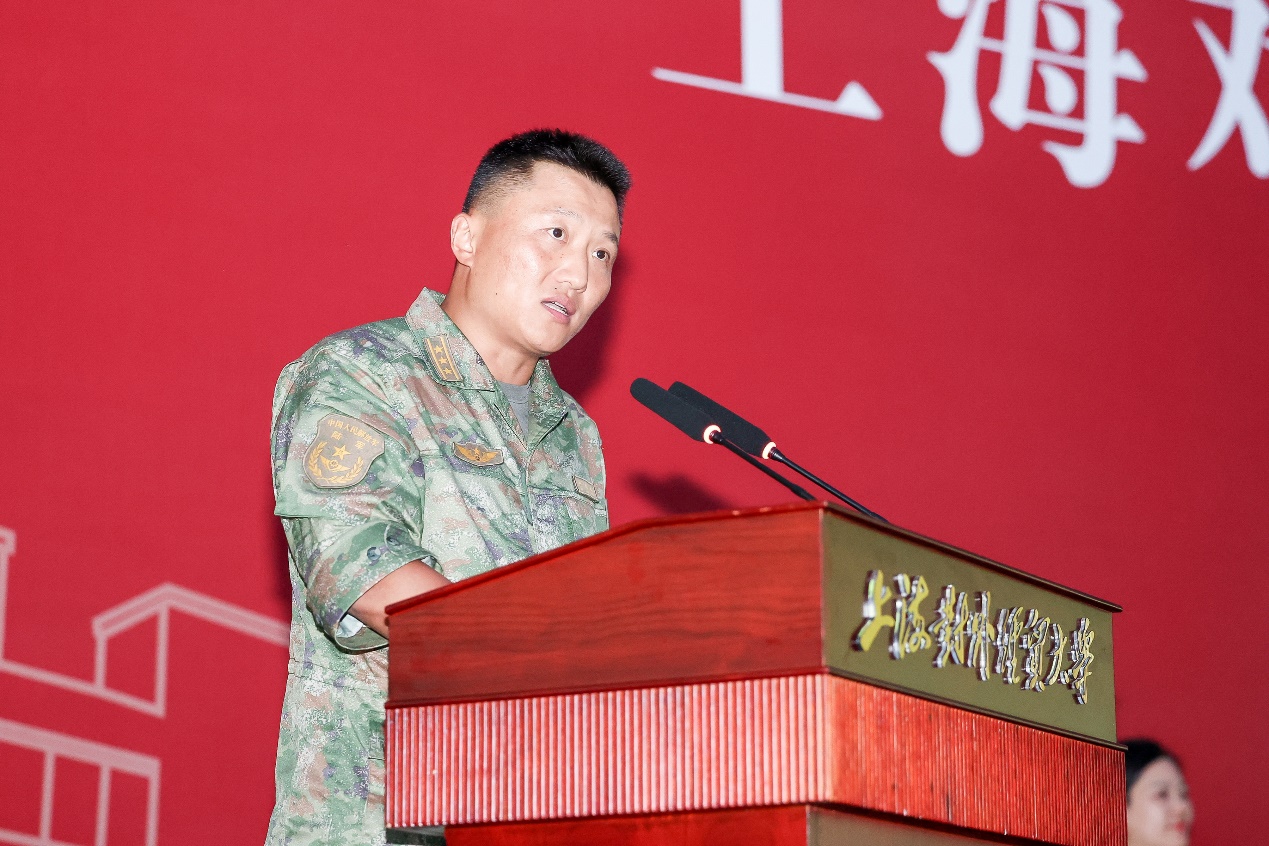 军训旅旅长鲍俊成上校作动员讲话。他向来自五湖四海的新同学表示热烈欢迎,希望同学们传承以裘劭恒等先贤为代表的“经邦济国、经世济民”上经贸大精神,肩负起舍我其谁、家国天下的责任担当。他鼓励全体学员,在时代洪流中锻造“知者不惑,仁者不忧,勇者不惧”的高尚品质,树鸿鹄之志,担历史重托。