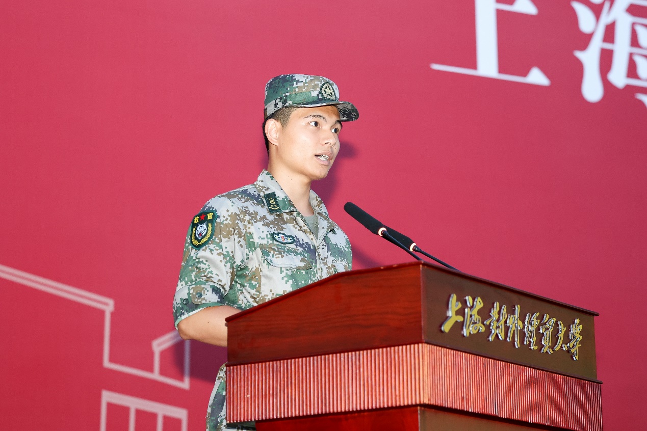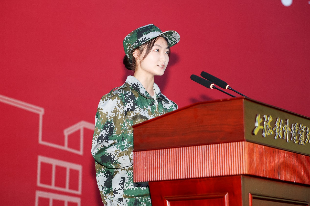 军训学员代表、军训旅二团四连余忆代表受训学员发言。她表示,全体参训学员必将刻苦训练、拼搏向上、磨练意志、练就本领,以高标准、高质量圆满完成本次军训任务。