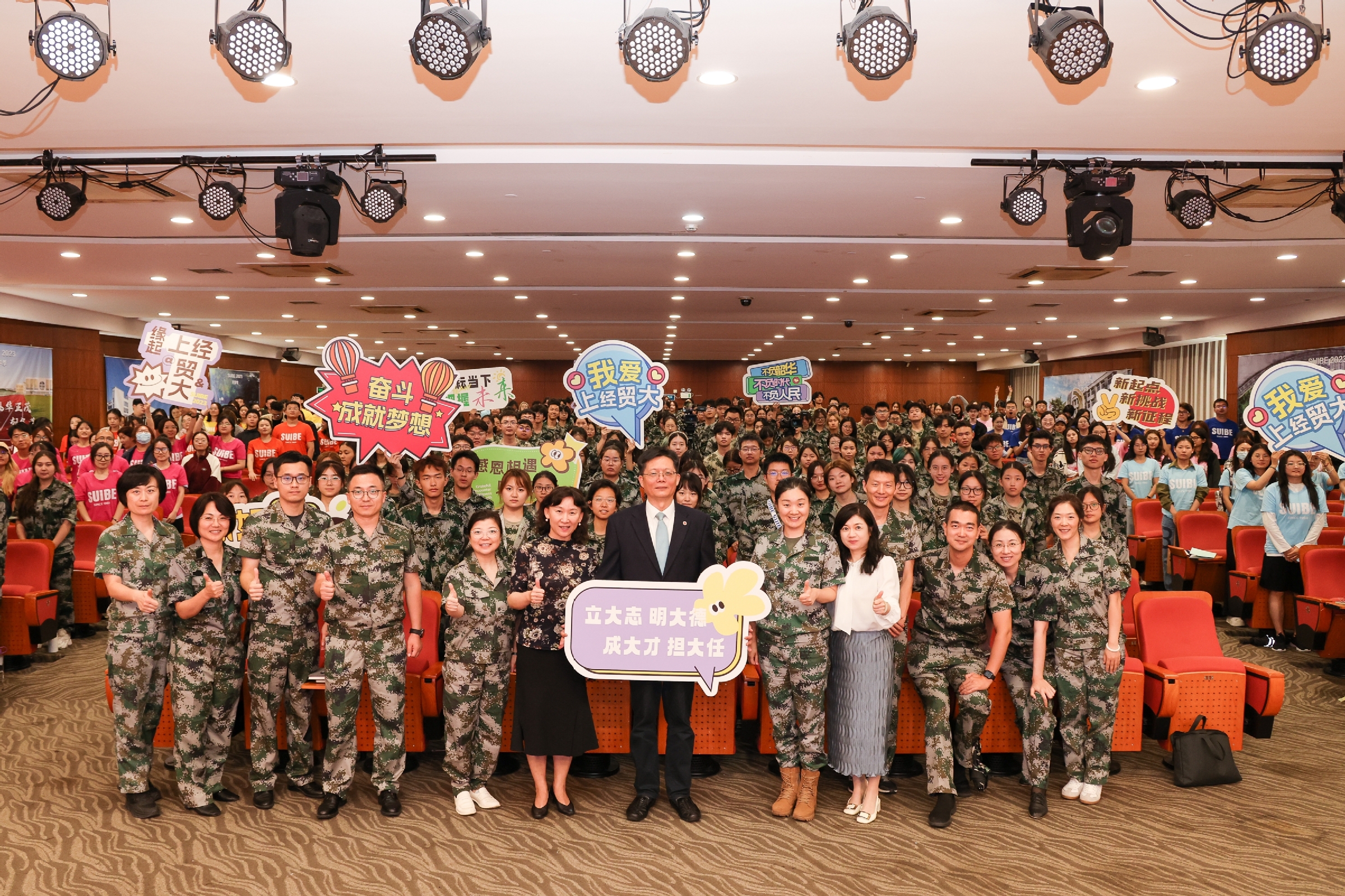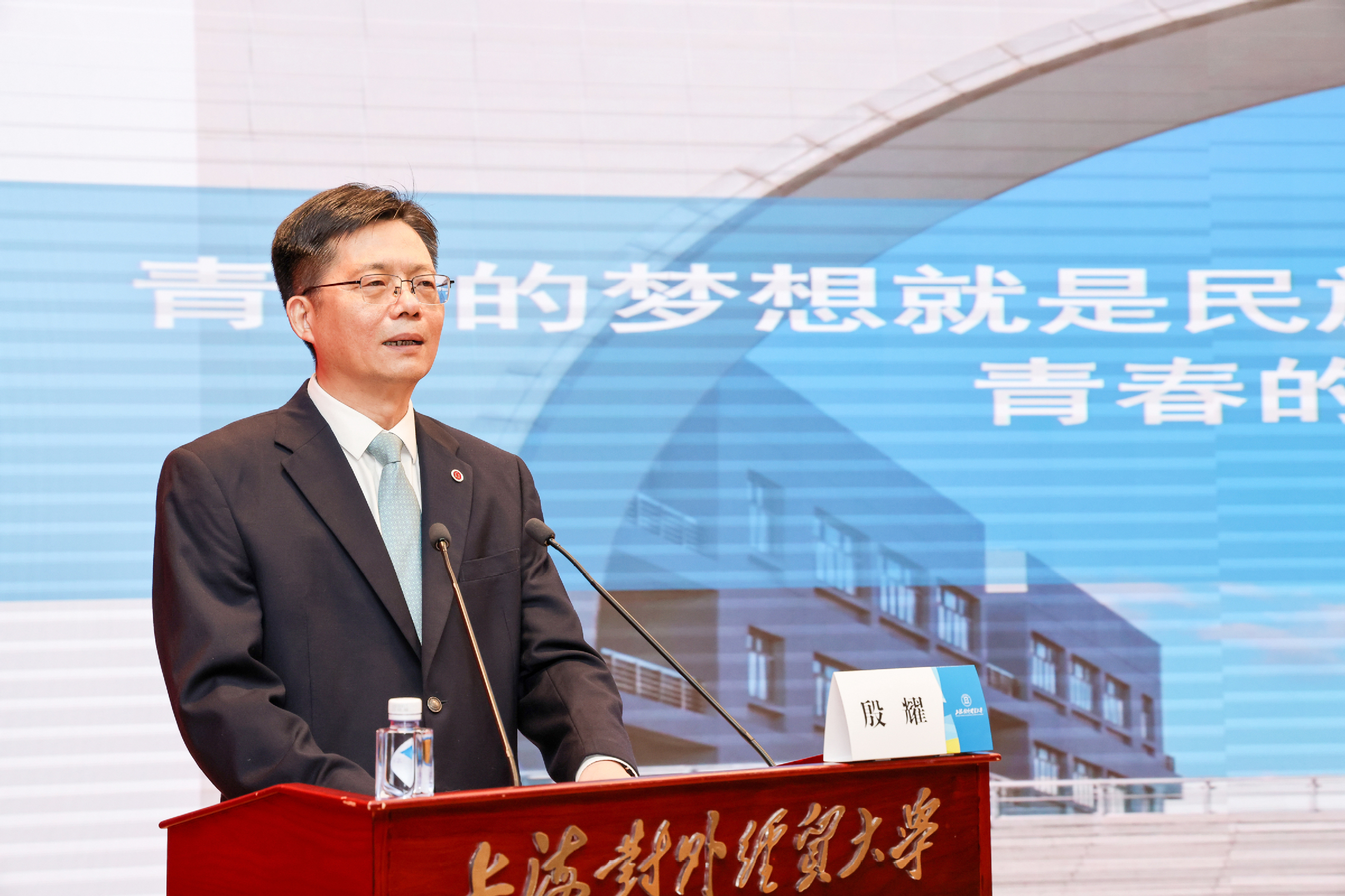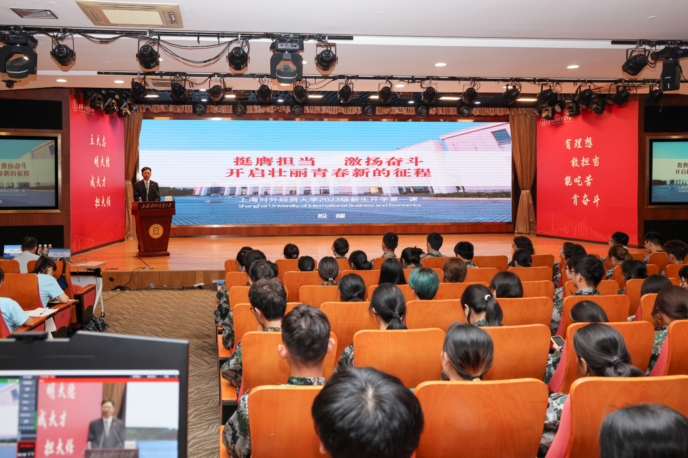 殷耀从中国高等教育的发展历程,学校的历史底蕴、办学特色以及发展韧劲等方面与同学们进行了交流。他表示,从建校开始,学校的定位就是服务国家对外开放战略。当前,学校已全面开启建设世界知名、国内一流、特色鲜明的高水平财经类大学新征程,这为全校师生提供了更为广阔的舞台。他强调,大学的根本任务是立德树人,学校在人才培养方面注重“厚基础、重实践、宽视野、强能力”,着力培养“具备较强外语应用能力、扎实经济学理论基础、掌握国际经济规则”的全球经济治理人才和国际组织后备人才。他希望同学们牢记和弘扬校训精神,以诚信立身、以宽容待人、以博学正业、以务实做事,使之成为一种价值尺度,一种精神坚守。