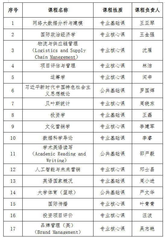 近日,上海市教委发布了《上海市教育委员会关于公布2023年度上海高校市级重点课程立项名单的通知》(沪教委高〔2023〕38号),必赢626net入口首页申报的《网络大数据分析与建模》等17门课程全部获得立项。其中,专业基础课4门、专业核心课10门、公共基础课3门。