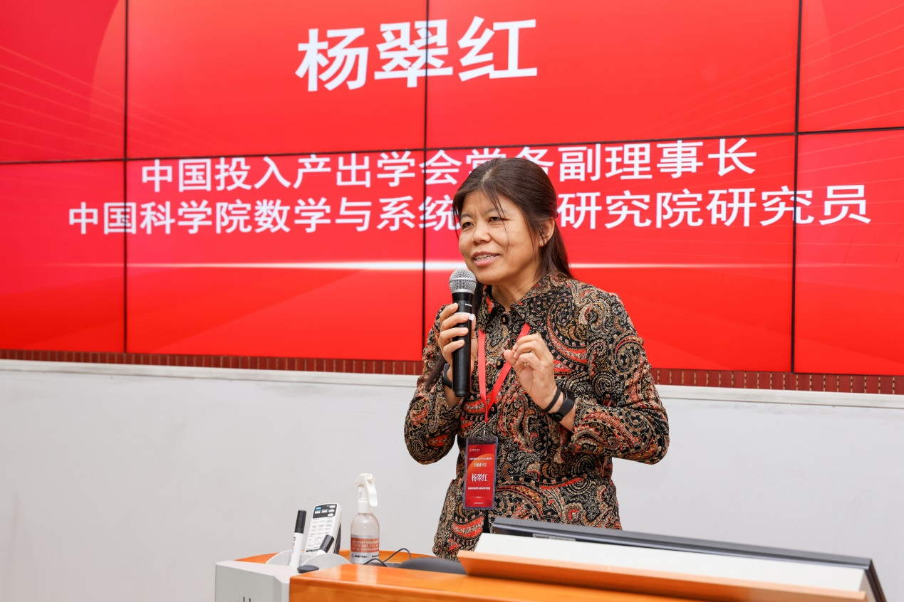 中国科学院数学与系统科学研究院副院长、中国投入产出学会常务副理事长、发展中国家科学院院士杨翠红研究员对学校主办本次研讨会表示祝贺,并对中国投入产出学会的工作做了简要介绍。