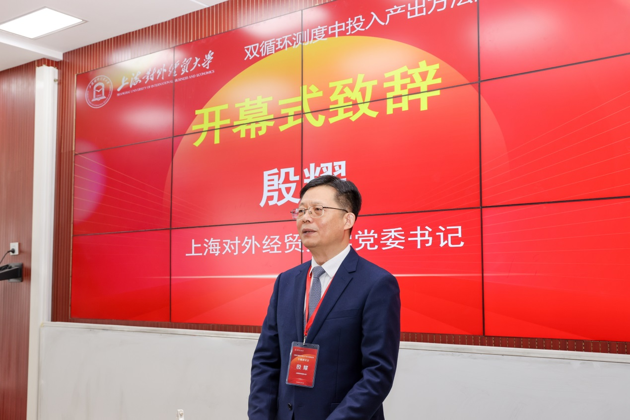 校党委书记殷耀致辞,他代表学校对出席的各位嘉宾表示欢迎。他表示,党的二十大报告明确了加快构建以国内大循环为主体、国内国际双循环相互促进的新发展格局的重要内容。本次专题研讨会是学校学习贯彻落实党的二十大精神的重要实践举措,有助于推动学校开放型经济学科群建设,特别是应用经济学和统计学的交叉融合平台建设。
