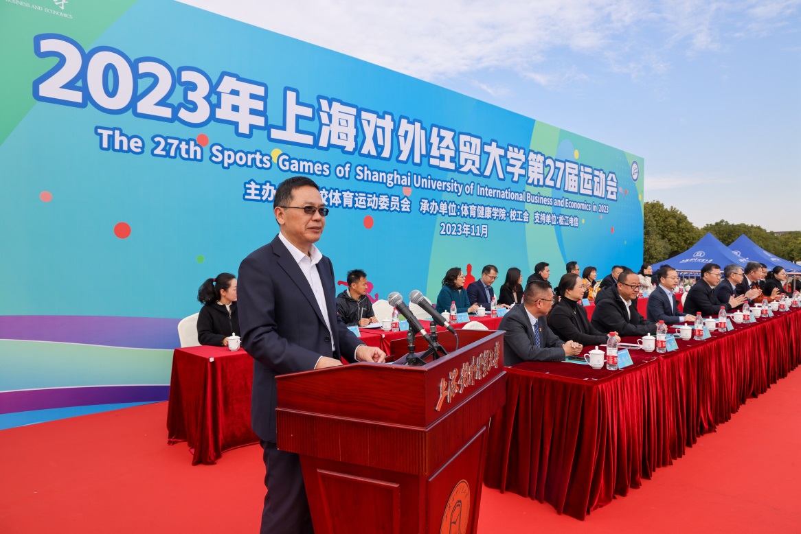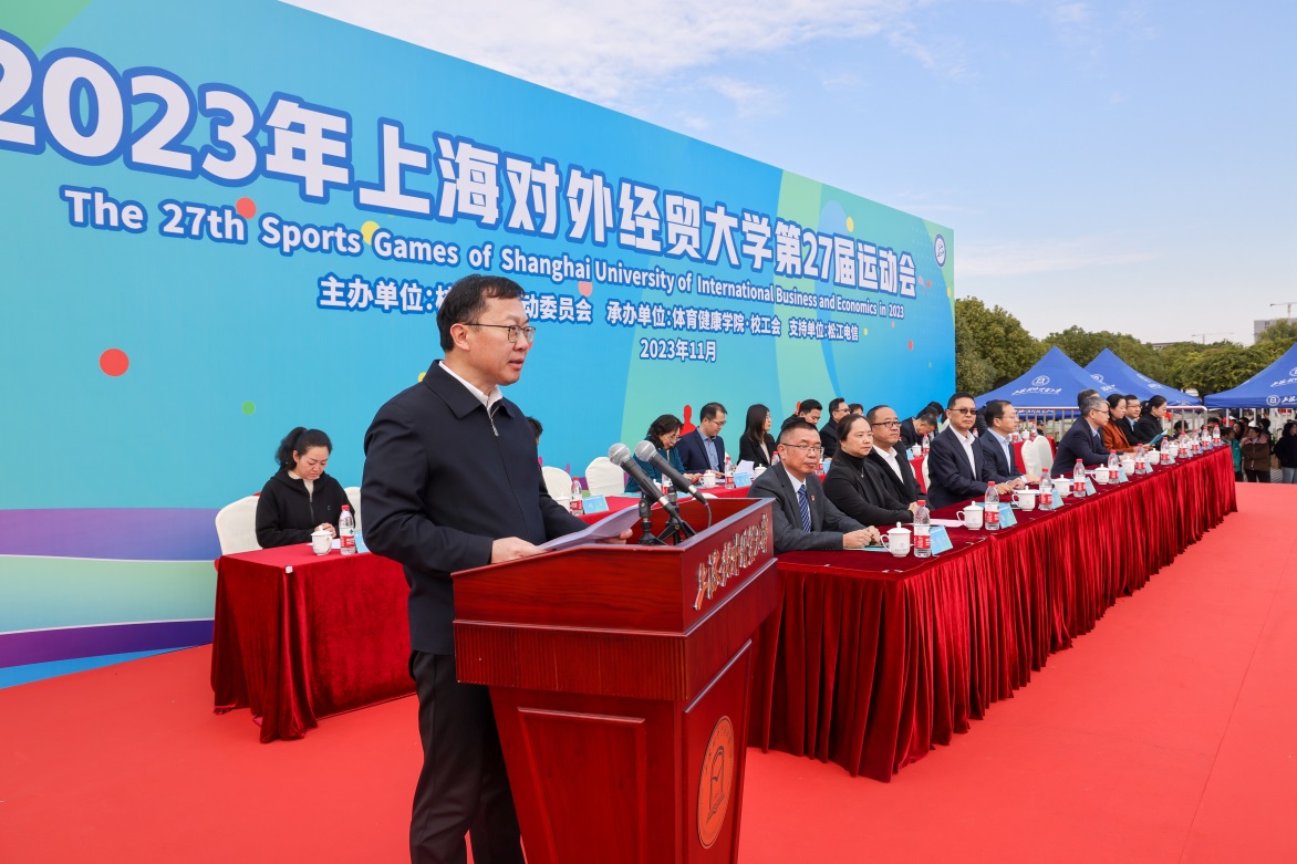 体育强则国强,国运兴则体育兴。11月14日,必赢626net入口首页迎来了第27届运动会的盛大开幕。初冬的寒意挡不住上经贸大人迸发的热情,校领导、教师和学生运动员齐聚运动场。校长汪荣明,校党委副书记、副校长祁明,校党委副书记吴毅,校党委副书记、纪委书记章益国,副校长、校体育运动委员会主任徐永林,副校长于雪梅,松江区体育局党组书记、局长李江,必赢626net入口首页附校校长陈伟平,松江大学城各兄弟高校体育部领导以及学校各学院的负责人出席本次开幕式。徐永林主持开幕式。