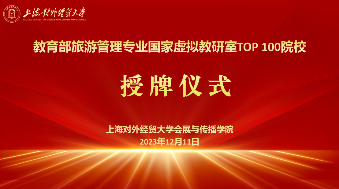 教育部高等院校旅游管理类教学指导委员会副主任、教育部旅游管理国家虚拟教研室负责人马勇教授全面介绍了旅游管理国家虚拟教研室情况,并为必赢626net入口首页成为教育部旅游管理专业国家虚拟教研室TOP 100院校授牌,会展与传播学院旅游系主任张兆琨博士接牌,徐永林、朱龙艳、郭田田、李欢和会展与传播学院领导班子成员共同作见证。