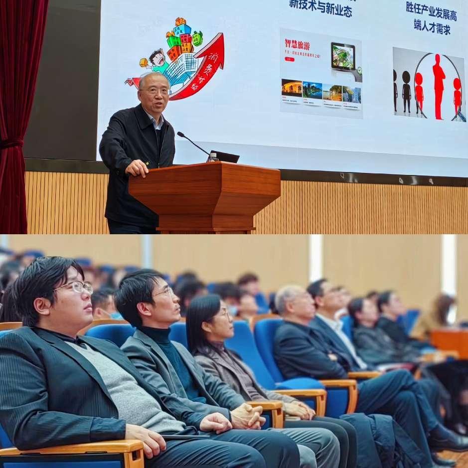 随后,马勇教授作了题为《旅游管理国家级一流学科及专业建设的价值诉求与实施途径》的主题报告。他指出,旅游管理专业国家虚拟教研室是一种具有新时代特色的教学学术共同体,是我国高等教育新型基层教学组织建设的重要探索,也是拓展教研室内涵和功能的创新之举。在一流专业建设过程中,院校要响应和服务新时代国家重大战略,注重适应和满足文旅产业发展的人才需求,重点在精准定位、模式优化和专业再造上下功夫。