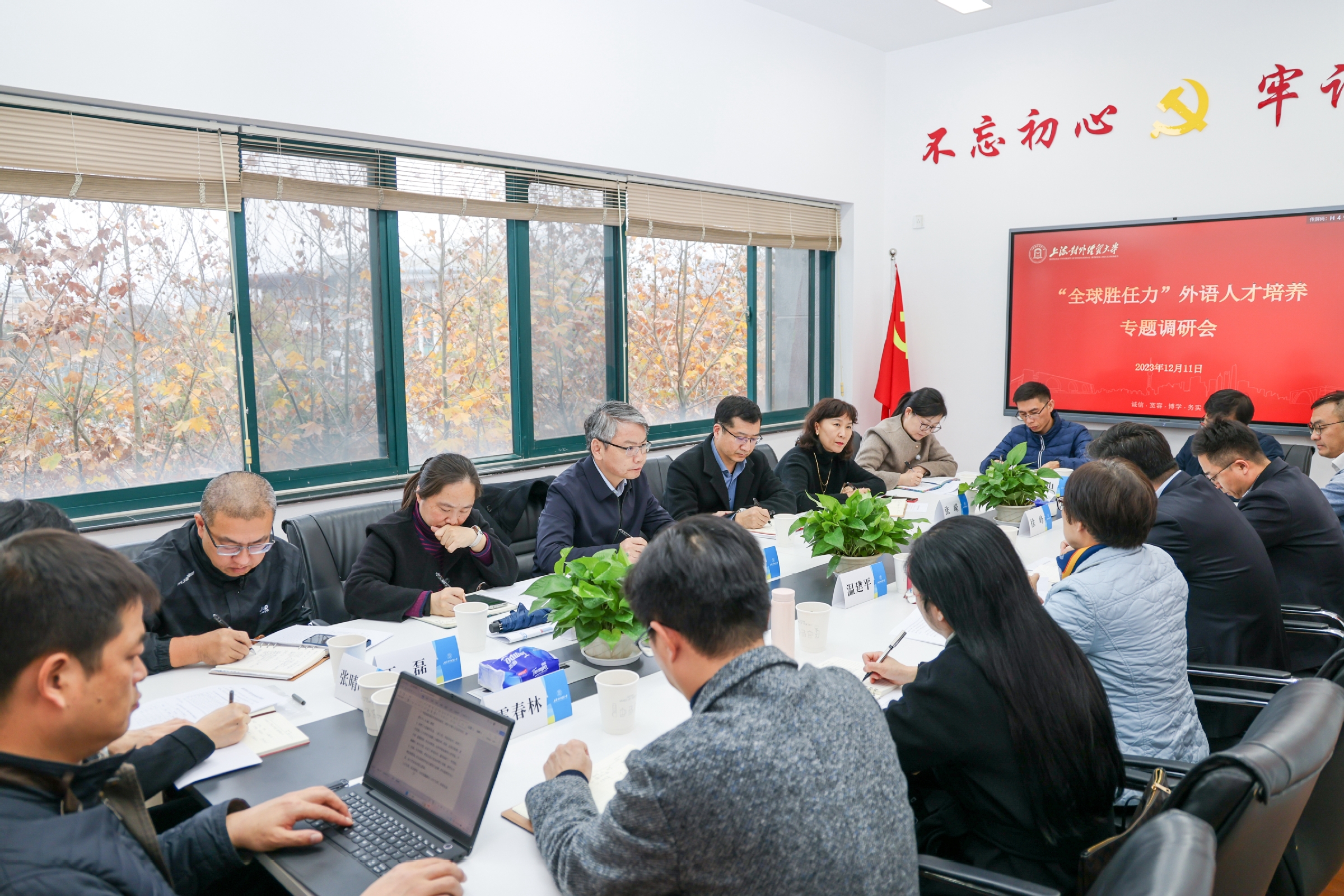 12月11日下午,校党委书记祁明赴国际商务外语学院主持召开专题调研会,就学校进一步推进新时代外语人才培养进行交流座谈。国际商务外语学院领导班子成员,党委组织部、党委宣传部、学校办公室、党委学(研)工部、人事处、教务处、招生就业处等相关部门领导参加本次调研。