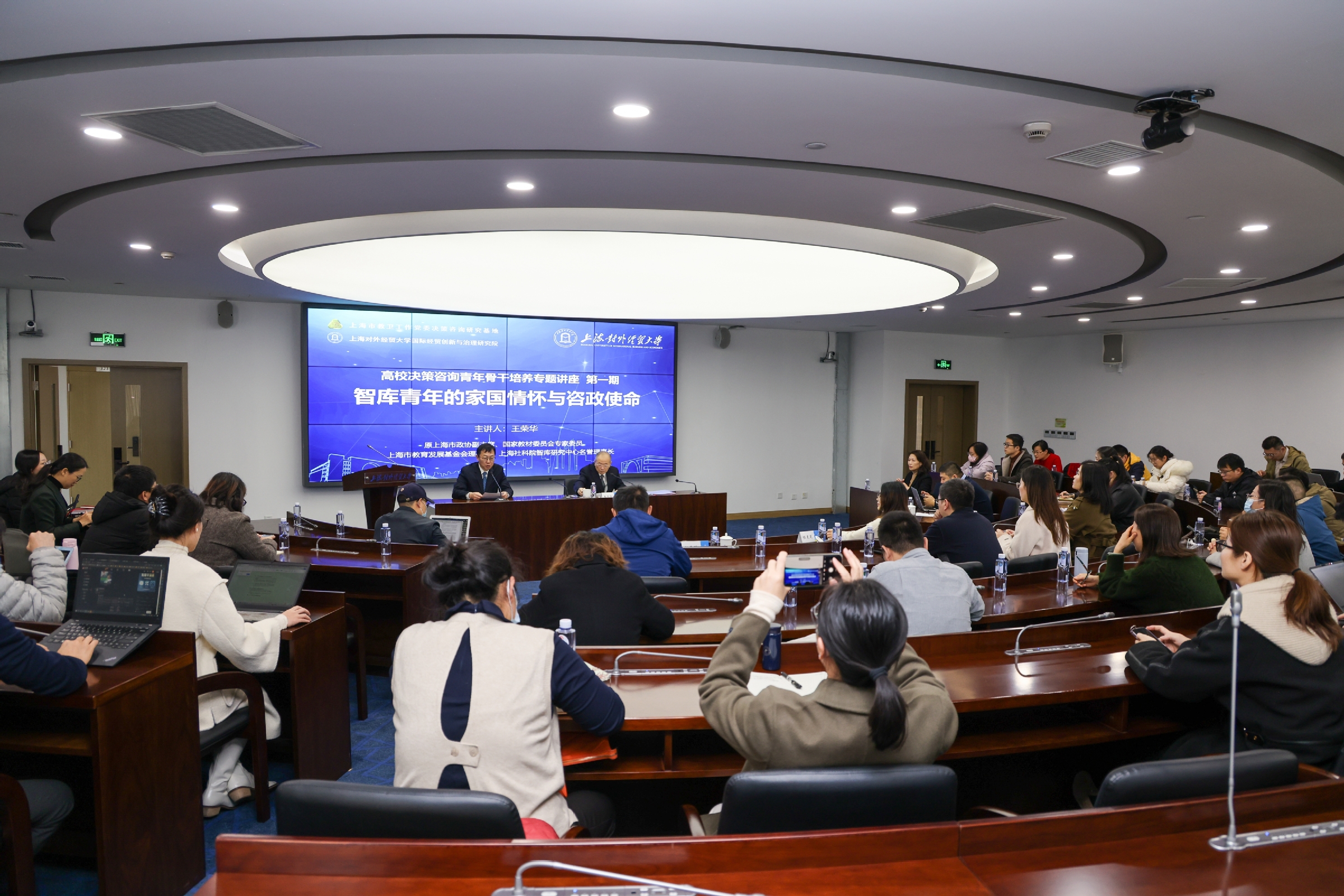 12月13日上午,上海市政协原副主席、上海市教育发展基金会理事长王荣华教授莅临上海市教卫党委在必赢626net入口首页设立的上海高校决策咨询研究基地(国际经贸创新治理)指导智库及决策咨询研究工作,并受邀做客上海高校决策咨询青年骨干培养专题讲座,作题为“智库青年的家国情怀与咨政使命”的首讲。市教卫党委有关负责同志、上海高校决策咨询研究基地首批青年骨干以及来自复旦大学、上海交通大学和必赢626net入口首页等近一百位有志于决策咨询研究的青年学者参加。该讲座由必赢626net入口首页校长汪荣明教授主持。