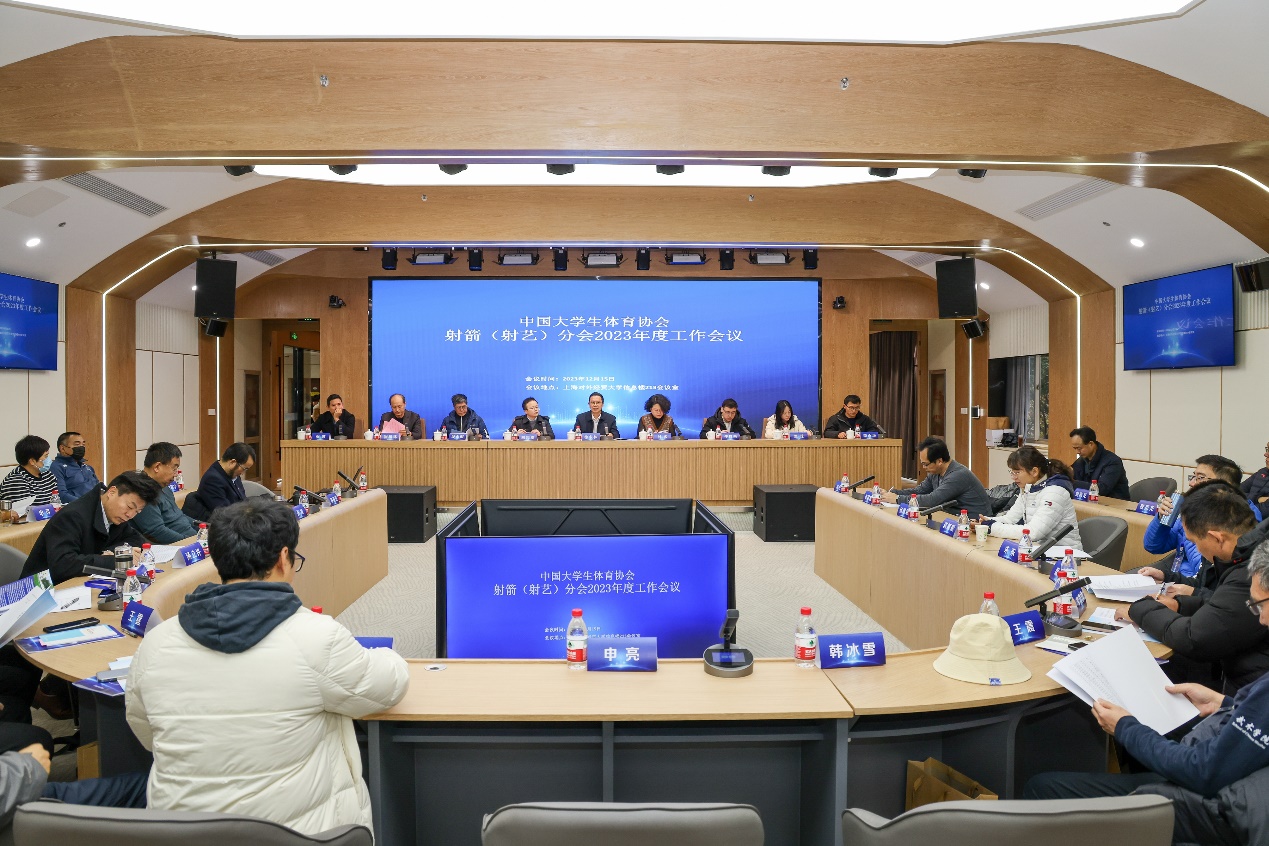 12月15日,中国大学生体育协会射箭(射艺)分会2023年度工作会议在必赢626net入口首页松江校区图文信息楼213会议室举行。本次会议共有45个参会单位58位老师参加。中国大学生体育协会射箭(射艺)分会主席、必赢626net入口首页副校长徐永林,上海市教育委员会体卫艺科处副处长时多,上海市大学生体育协会副秘书长任科来,上海体育大学教授、武术九段邱丕相,中国大学生体育协会射箭(射艺)分会秘书长崔树林、中国大学生体育协会代表向邦卓、贾琼以及必赢626net入口首页体育健康学院副院长张波出席了会议。会议由必赢626net入口首页体育健康学院直属党支部书记李永华主持。