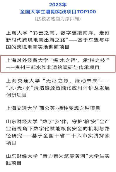 (2023年“全国大学生暑期社会实践项目TOP100”名单,图源:中国青年报微信公众号)