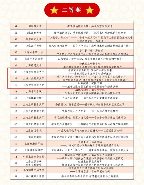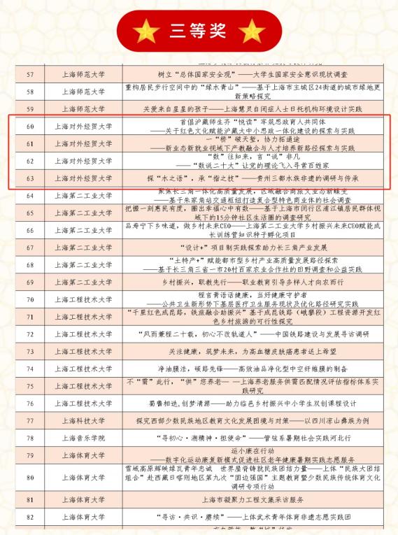 (2023年“知行杯”上海市大学生社会实践大赛二等奖、三等奖名单,图源:团在校园 上海学联微信公众号)