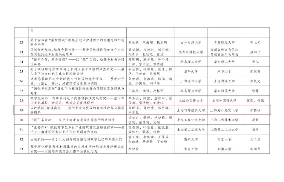 (2023年度“三下乡”“返家乡”社会实践优秀调研报告名单,图源:团中央创青春微信公众号)