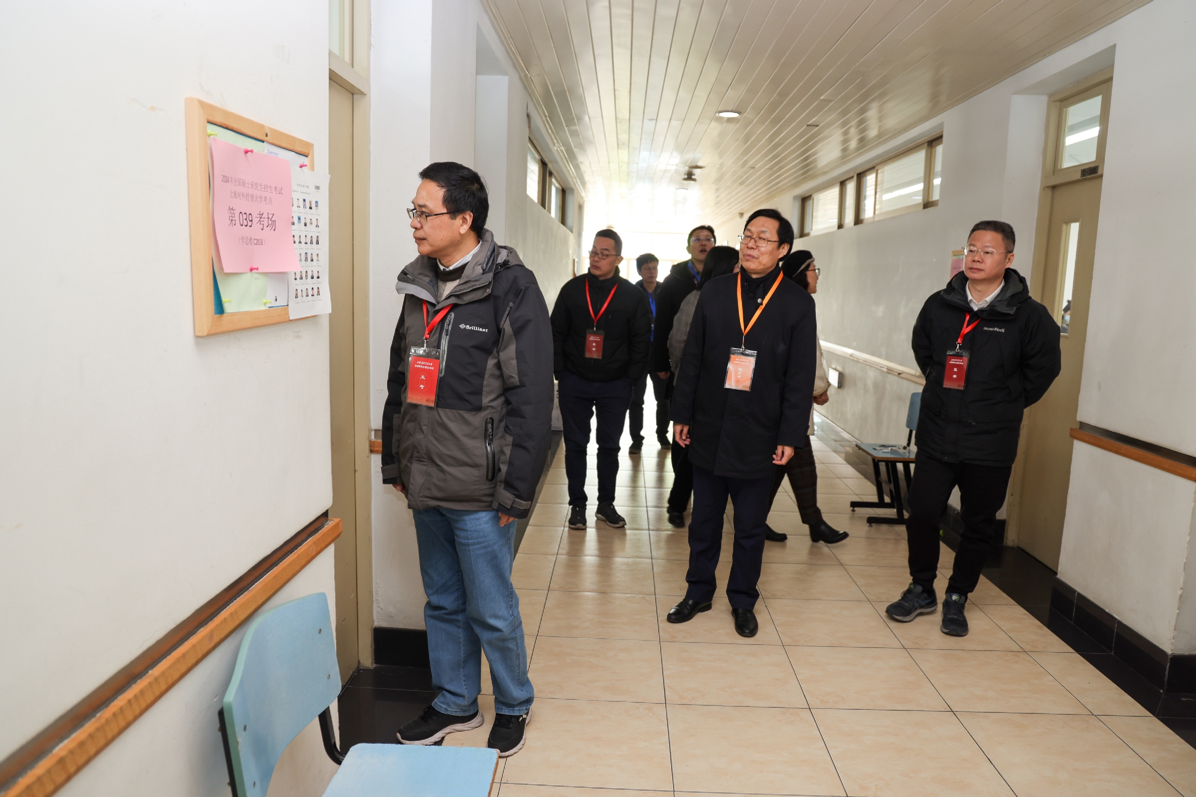 12月23日-12月25日考试期间,研究生招生考试主考、副校长徐永林,研究生招生监察领导小组组长、校党委副书记、纪委书记章益国巡查考场考试情况,并在指挥中心密切关注考试进展。