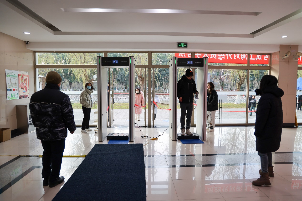 在安检通道配备了智能安检门和手持金属探测仪,确保考生进场有序、快速、顺畅。