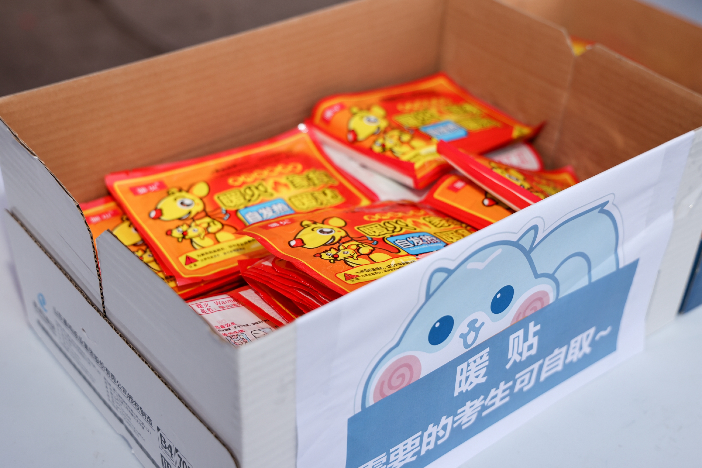 天气寒冷,各个部门工作人员、学生志愿者早早地到达指定点位,认真做好各项准备工作。学校准备暖贴、姜茶,让等候的考生迅速取暖,为学生顺利考试提供温馨服务。