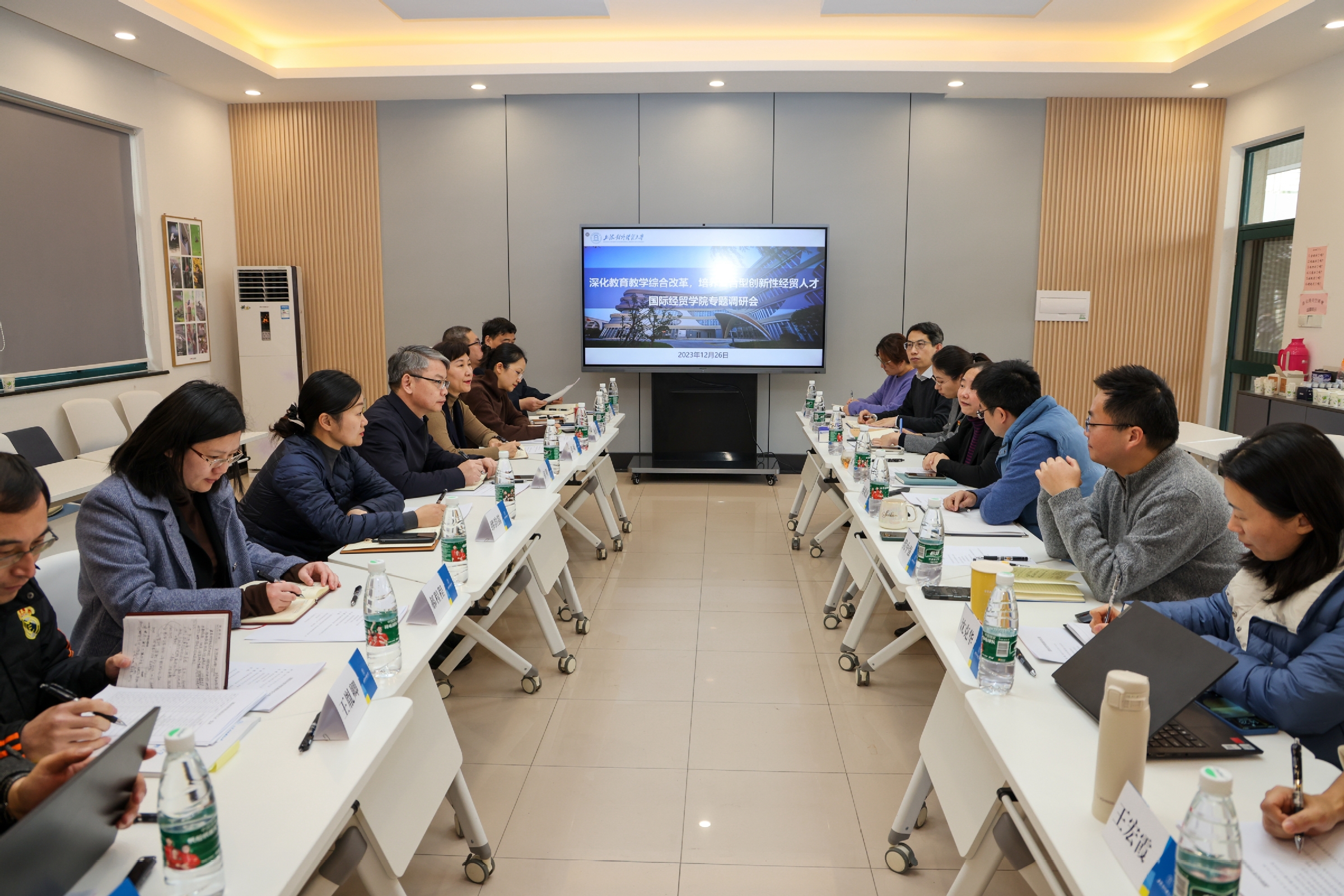 12月26日下午,校党委书记祁明一行赴国际经贸学院召开专题调研会,就学院进一步提升人才培养质量进行座谈交流。国际经贸学院班子成员、教师代表,学校办公室、教务处、研究生院、党委学(研)工部、党委教师工作部(人事处)、招生就业处以及规划处等相关职能部门领导参加了本次调研。