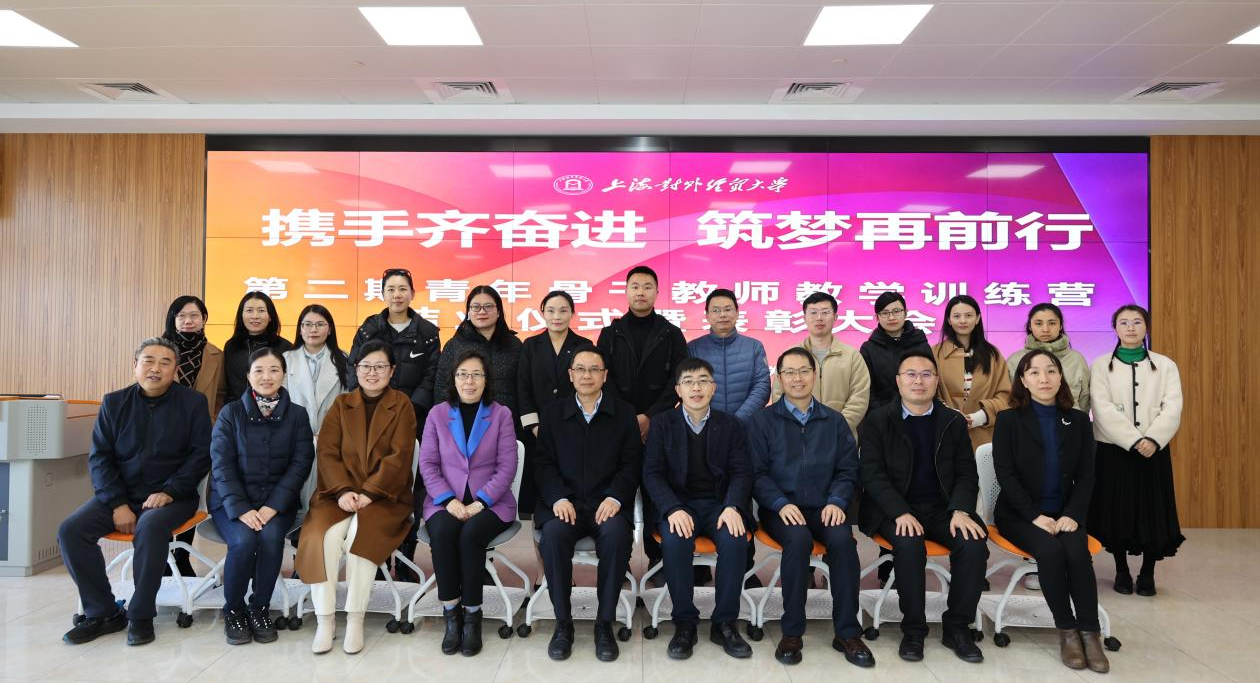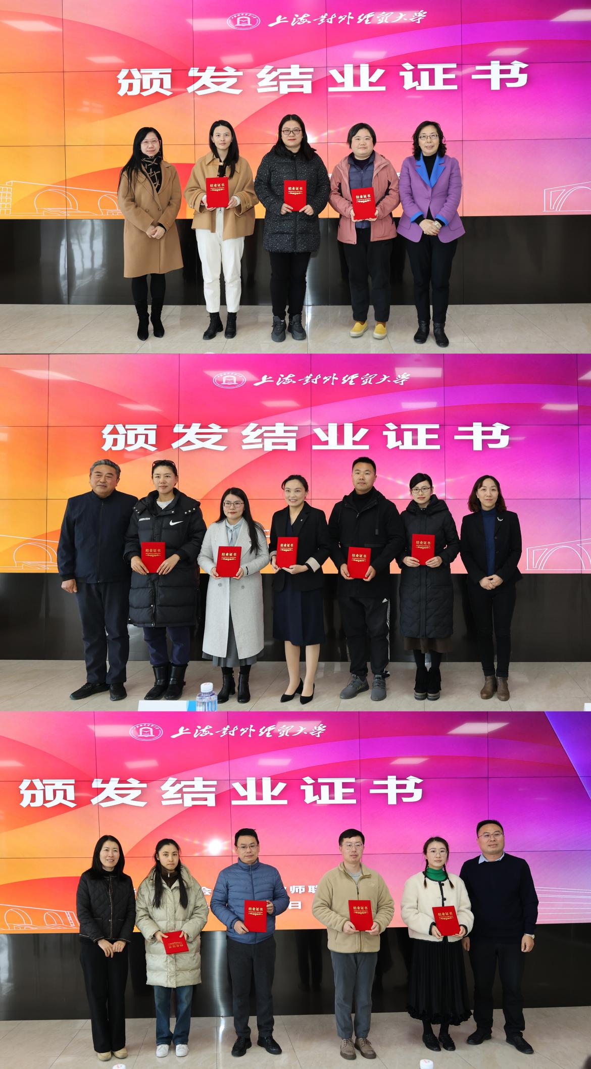 第二期青年骨干教师教学训练营特聘指导教师秦淑娟、谢佩洪、程洁和马克思主义学院、国际经贸学院、国际商务外语学院的教学副院长冯国芳、沈克华、王玉分别为三组学员颁发结业证书,并向顺利结业的全体学员表示祝贺。