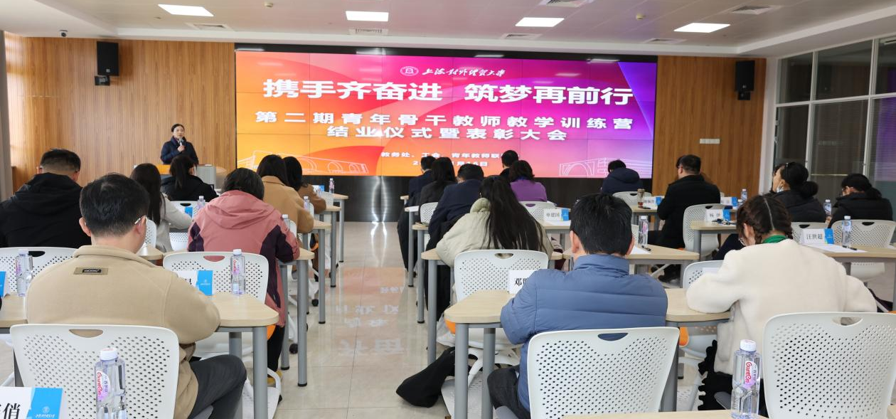 1月16日下午,学校第二期青年骨干教师教学训练营结业仪式暨表彰大会在信息楼201室举行。副校长徐永林,相关职能部门负责人、教学副院长、第二期青年骨干教师教学训练营特聘指导教师和全体学员参加会议。结业仪式由教务处副处长李医群主持。