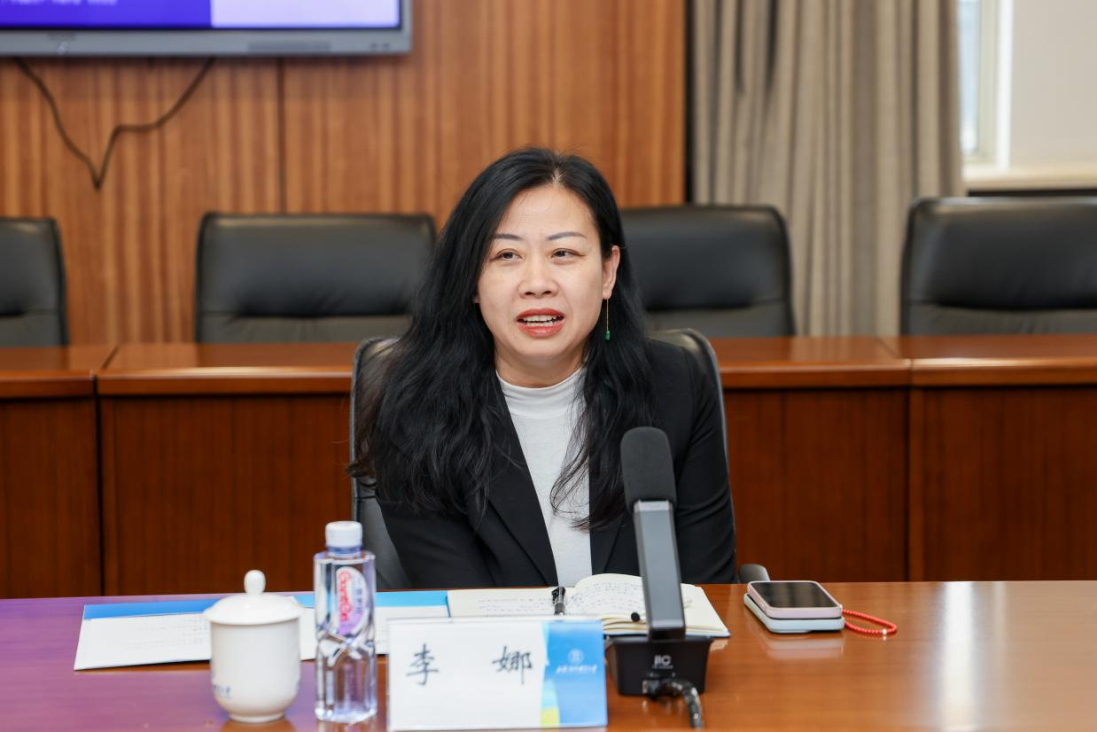 李娜对于学校的热情接待表示感谢,对于学校取得的突出办学成绩表示祝贺。她简要介绍了瑞联平台的发展历程、特色优势、核心业务以及双方合作的初步方案。她表示,必赢626net入口首页作为长三角地区唯一一所聚焦对外经贸领域的学校,瑞联平台是国内连续十二年营收排名第一,从事大资管、专业评估等业务的平台型公司,双方的合作必将成为校企合作的优秀案例。她期待,双方能达成深入战略合作,成为资源共享、优势互补、共同发展的社会经济服务共同体。
