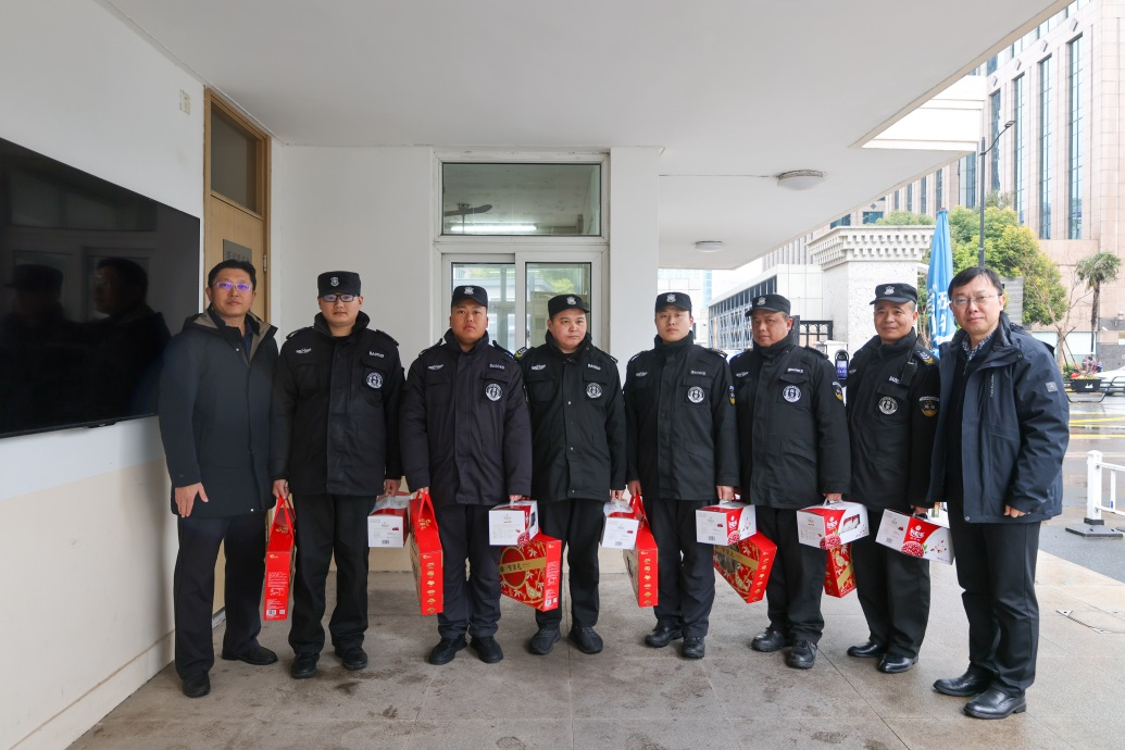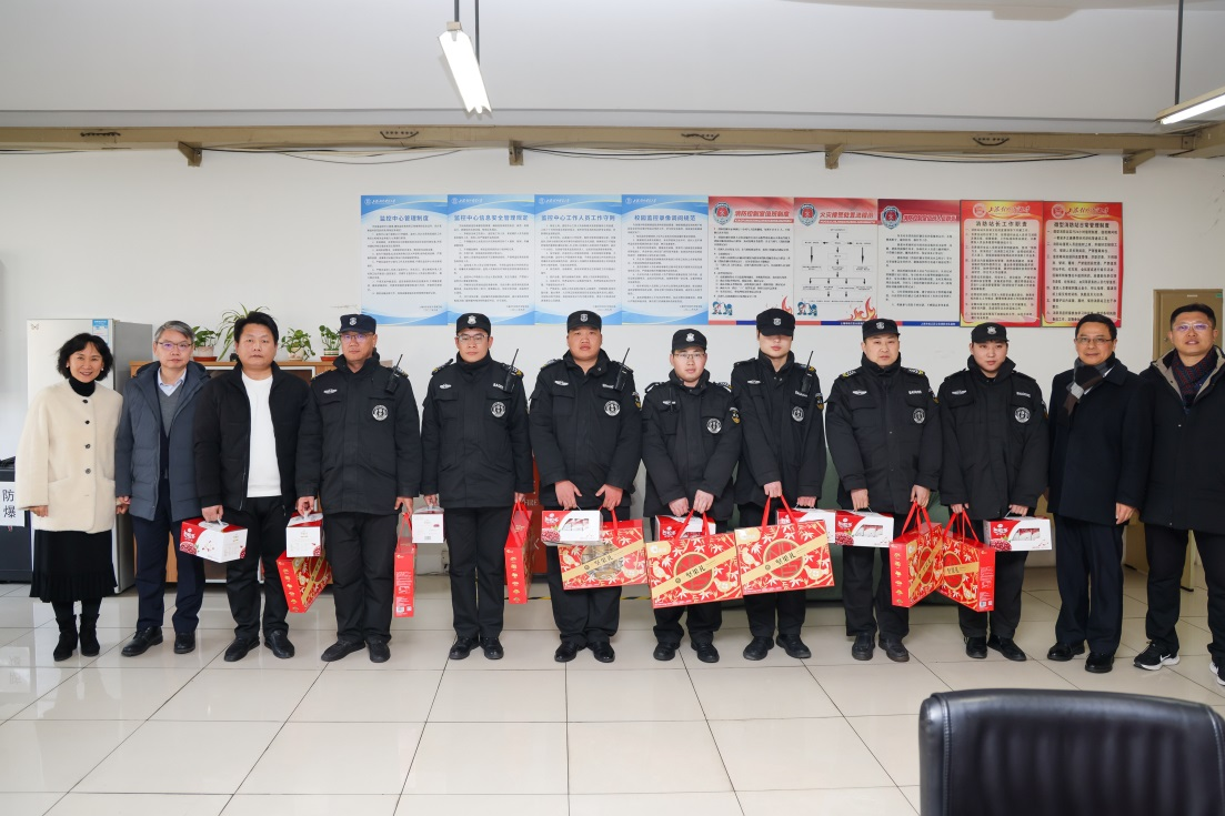 在党委保卫部,校领导亲切慰问了一线值守的安保队员。祁明说,过去的一年,党委保卫部的同志们风雨无阻,不分昼夜守卫校园,为学校的安全稳定做出了重要贡献,希望大家继续坚守岗位,认真细致做好各项安全保卫工作,为建设安全稳定、美丽祥和的校园做出更大贡献。