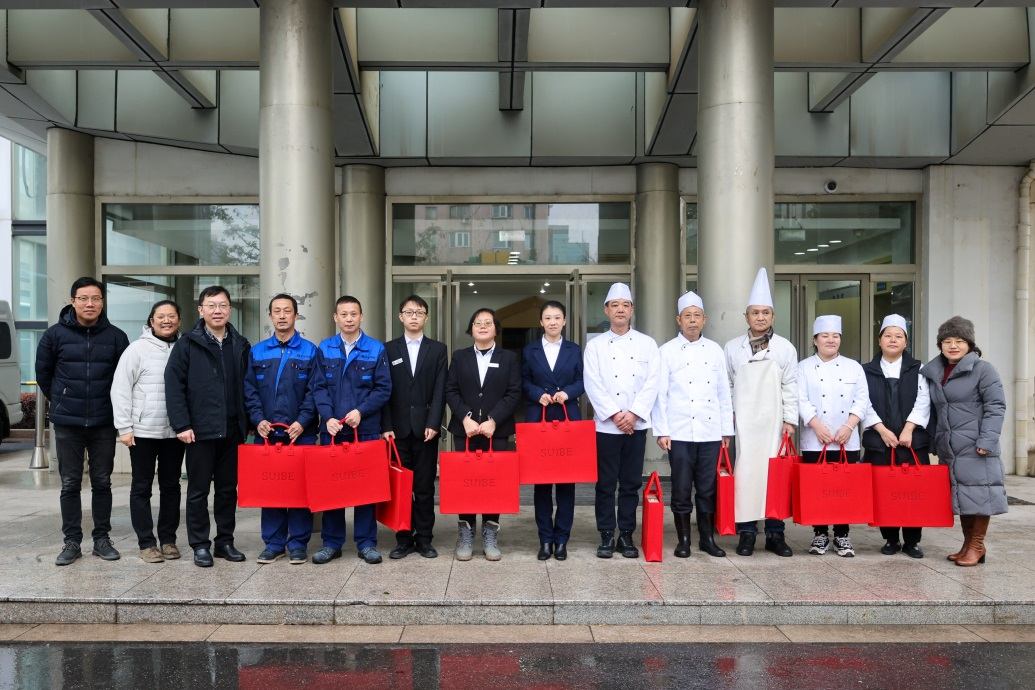 2月8日,校党委书记祁明、副校长徐永林一行赴松江校区开展慰问。校领导一行先后来到“一站式”学生社区和食堂,向仍然在各个岗位上工作的后勤员工送上节日的问候。祁明表示,春节即将到来,学校的餐饮、物业、环卫等后勤服务保障工作一直没有停歇,向大家辛勤的工作表示感谢,祝大家春节愉快。