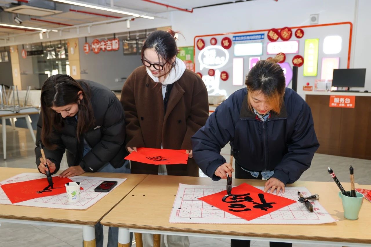 玉兔欢跳辞旧岁,祥龙飞舞贺新春。2月8日,学校慰问春节留校学生新春联欢会暨年夜饭活动在学生一食堂二楼举行。校党委书记祁明、副校长徐永林,学校相关职能部处负责人、部分学院负责人和辅导员代表与40余名留校学生欢聚一堂,共同迎接农历甲辰龙年的到来。来自俄罗斯、乌兹别克斯坦、土库曼斯坦、哈萨克斯坦、莱索托、苏里南、秘鲁等国家的留学生们也欢聚现场,一起感受传统中国年的浓浓年味。