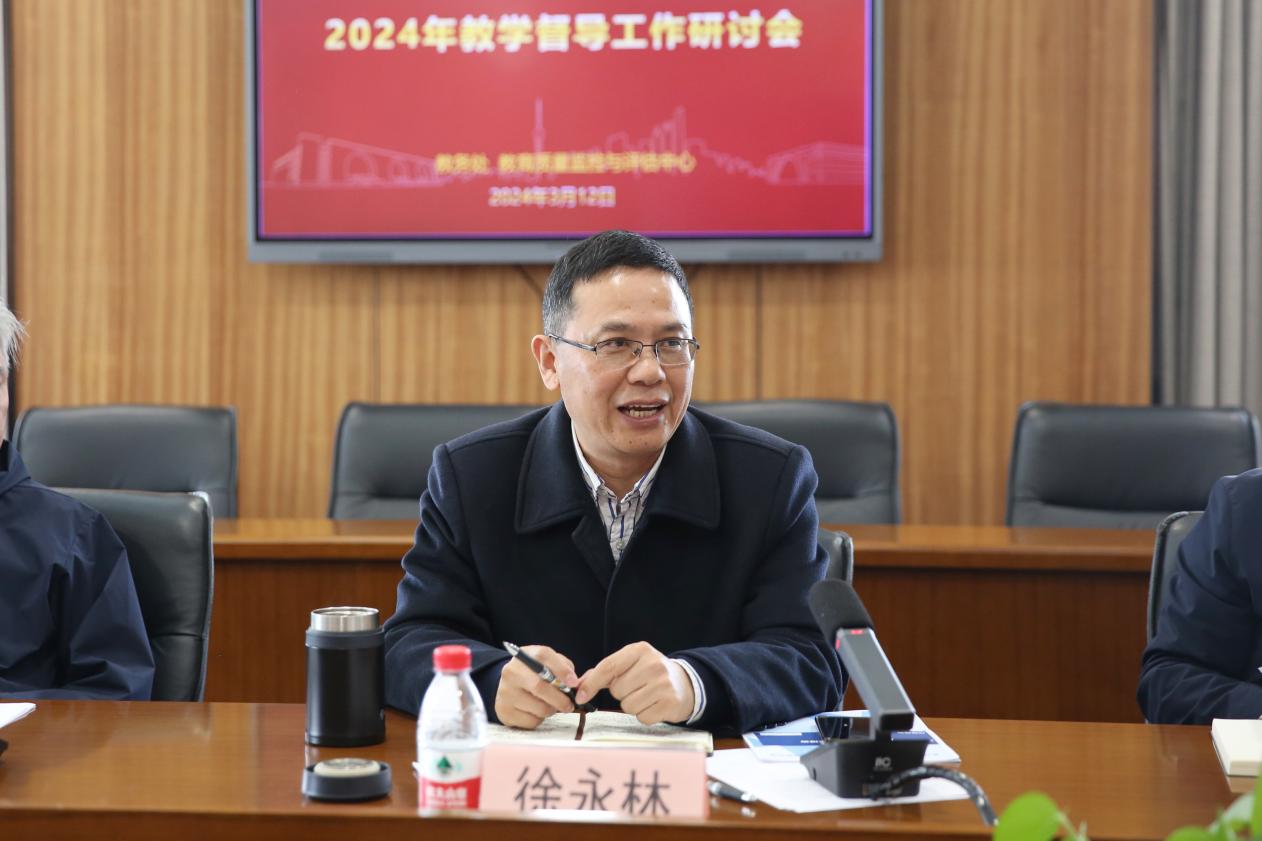 会上,徐永林结合学校本科教育教学年度工作重点,对本科教育教学督导工作提出三点要求:一是把审核评估整改作为今年督导工作的重点。学校以审核评估整改为抓手,坚持把重点工作与日常工作相结合、近期整改与长期建设相结合,形成教育教学质量保障的长效机制,将质量要求内化为全校师生的共同价值追求,以卓越的本科教育教学助推学校事业发展。二是正确处理和把握“督”与“导”的关系,加强“导”的力度,切实提高教师教学能力。要重视青年教师培养,通过合理的制度设计,采取有效举措帮助青年教师站稳讲台。三是落实“学为中心”,关注学生成才成长。要以学生发展为本位,强化学生中心、产出导向、持续改进,把评价关注的重点由“教师教”向“学生学”转变,从“主要注重知识传授”向“更加注重学生能力培养”转变,从“关注教师课上得怎样”向“关注学生学得怎样”转变。