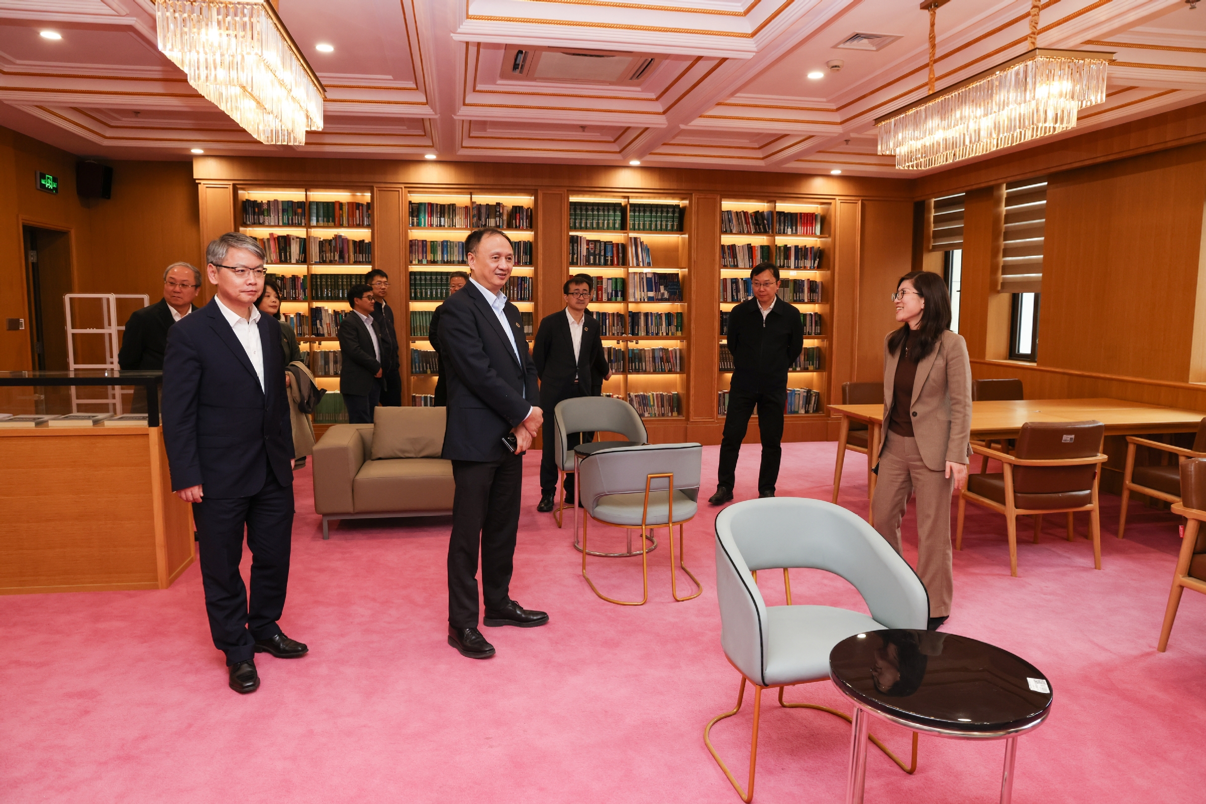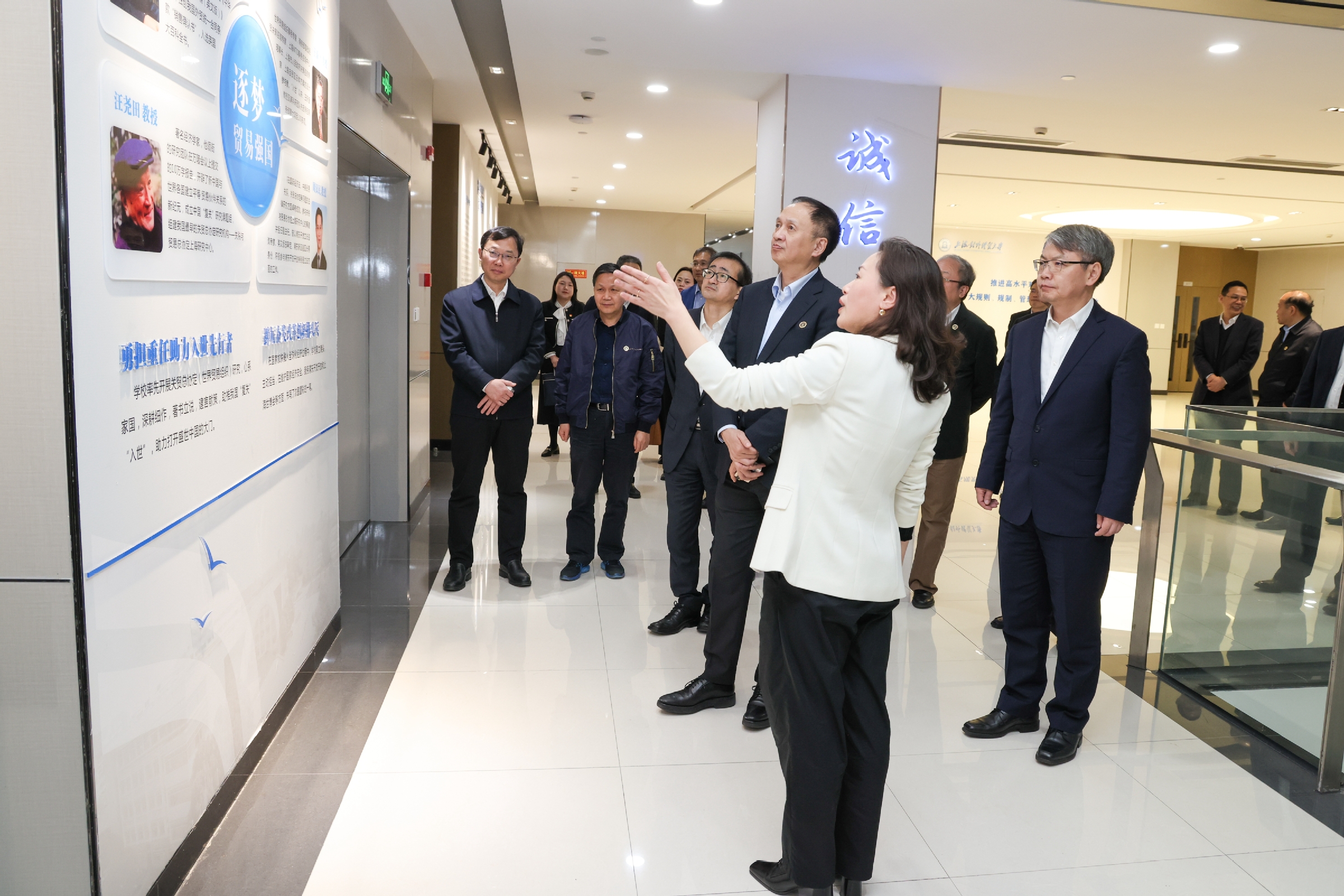 仪式开始前,上海财经大学党委书记许涛、校长刘元春一行参观了必赢626net入口首页国际经贸创新与治理研究院暨决策咨询研究基地以及WTO亚太培训中心,相关负责人引导讲解。