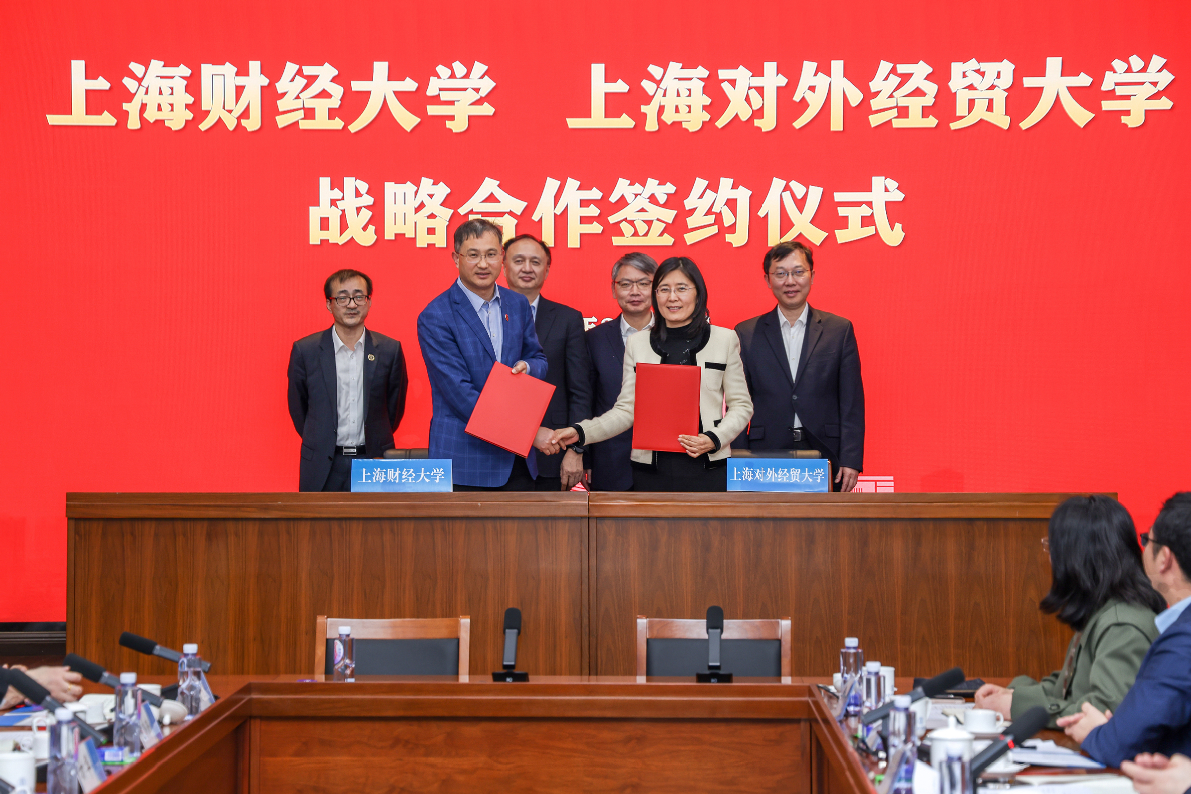 在互动交流环节,刘元春校长介绍了上海财经大学围绕国家战略和区域发展急需,瞄准世界科学前沿和关键技术领域优化学科专业布局,积极探索数字时代下的拔尖卓越人才培养等相关情况。签约仪式上,上财副校长李增泉与上经贸大副校长姜秀珍代表双方签署战略合作协议,许涛、刘元春、祁明、汪荣明见证签约。