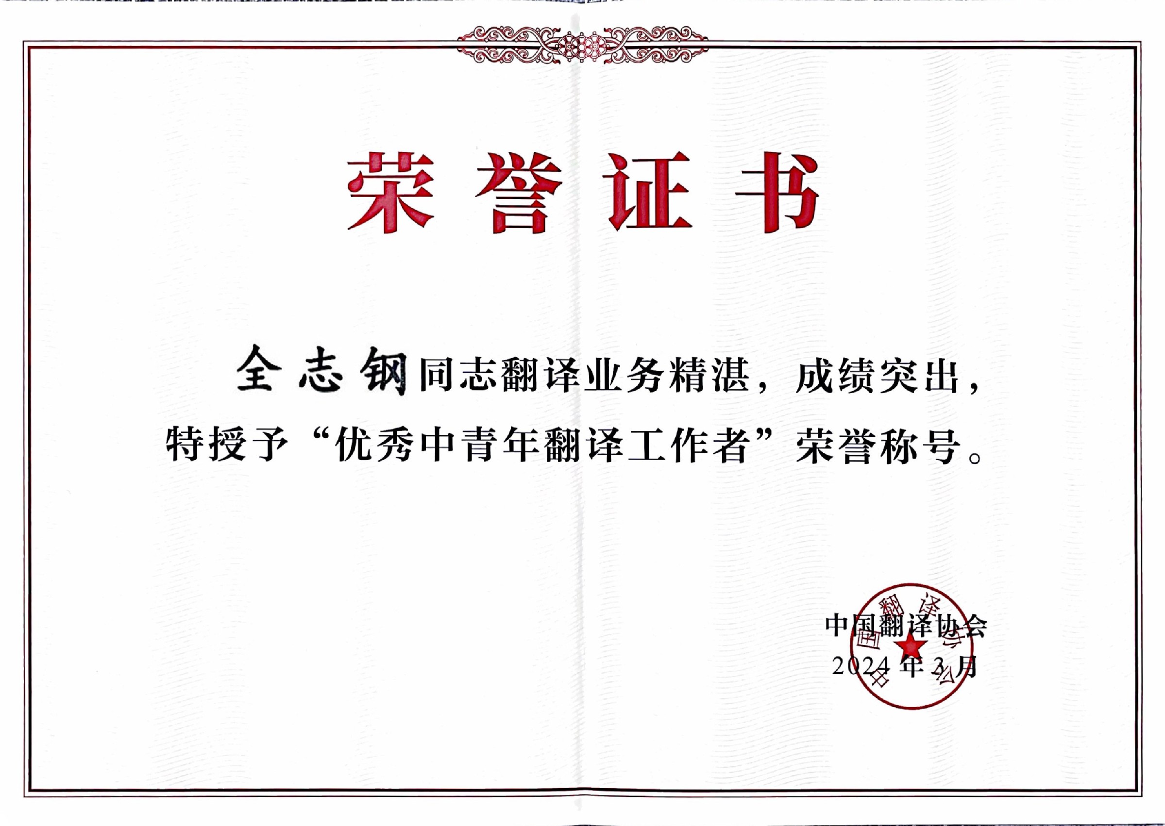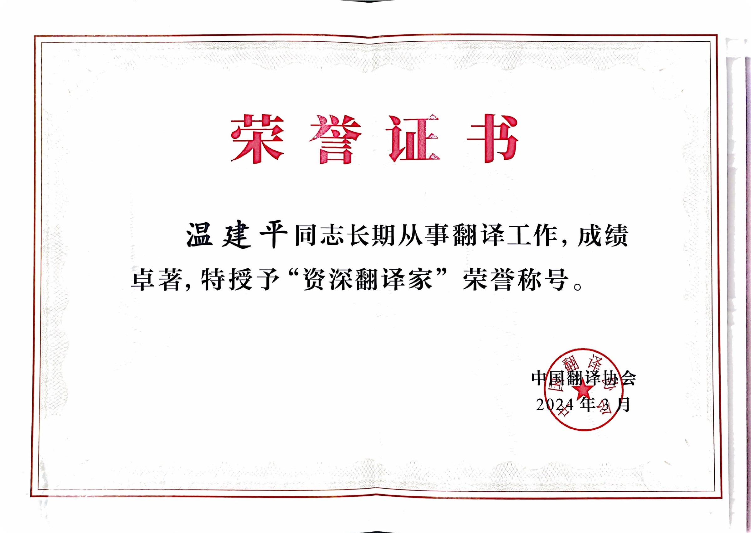 据悉,中国翻译协会本次共评选出翻译文化终身成就奖获得者13名、资深翻译家73名、优秀中青年翻译工作者125名、翻译中国外籍翻译家8名。2024年3月30日,中国翻译协会2024年年会上举行了隆重的表彰仪式。