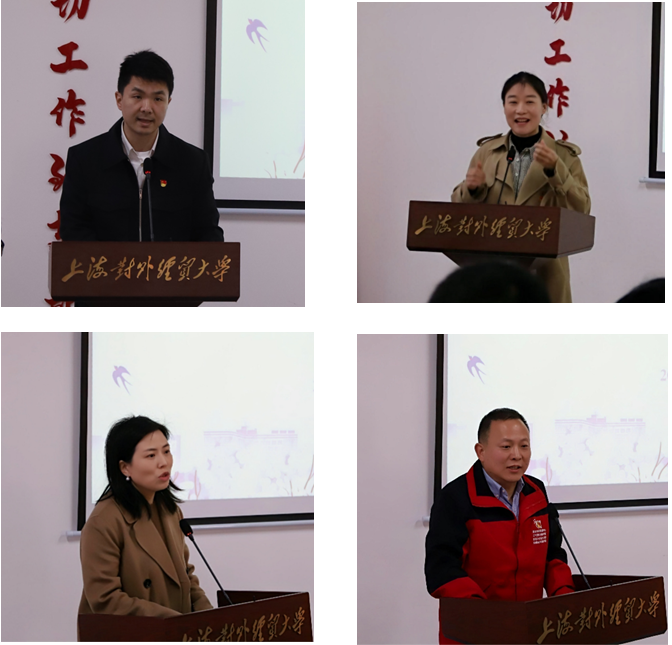 吴毅代表学校对来校嘉宾表示欢迎和感谢,他谈到近年来学校在高质量党建引领高质量发展方面创新求索,持续增强基层党组织政治功能和组织功能,全面启动“卓越党建领航行动”,围绕“外”“经”“贸”特色,深入实施“四红八领”行动计划。其中“红域”行动,就是通过架构线下党建阵地集群,建强党建赋能区域发展共建共享平台,打造新时代党建前沿阵地。在共建单位的支持合作下,学校区域化党建工作在党的创新理论宣传宣讲和联学共建、党建平台资源共享、智慧党建赋能升级、校企产学研合作、城乡结对帮扶、创新创业项目孵化等领域取得了新进展新成效。
