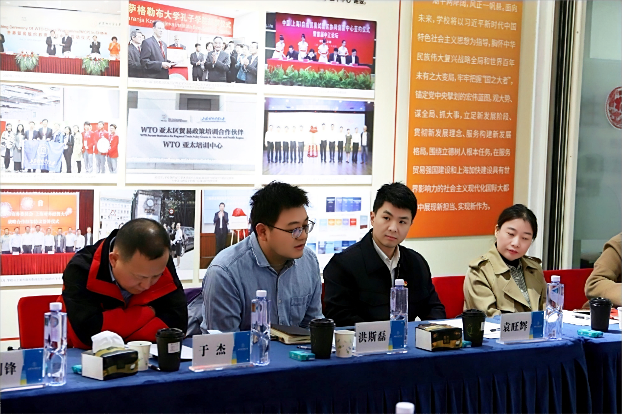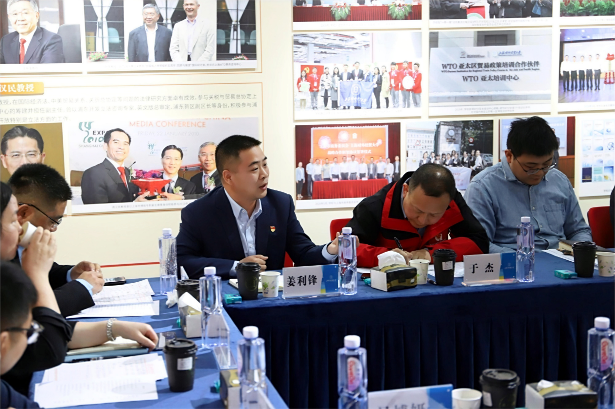 长宁区司法局虹桥司法所负责人洪斯磊、松江区新浜镇文华村党总支书记姜利锋、松江区佘山镇刘家山村党总支书记陈海、中国银行上海市分行高级客户经理王帅、羚跑众创空间党支部书记刘铭钊分别作交流发言,就涉外法治服务、乡村振兴、校企合作等内容交流思考和体会,提出很好的建议。