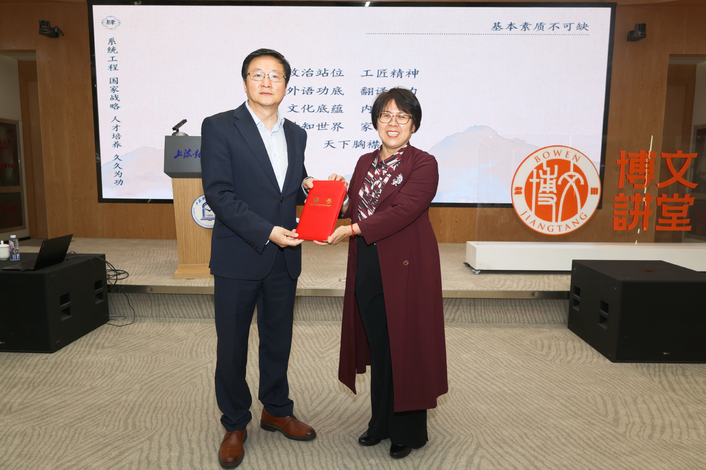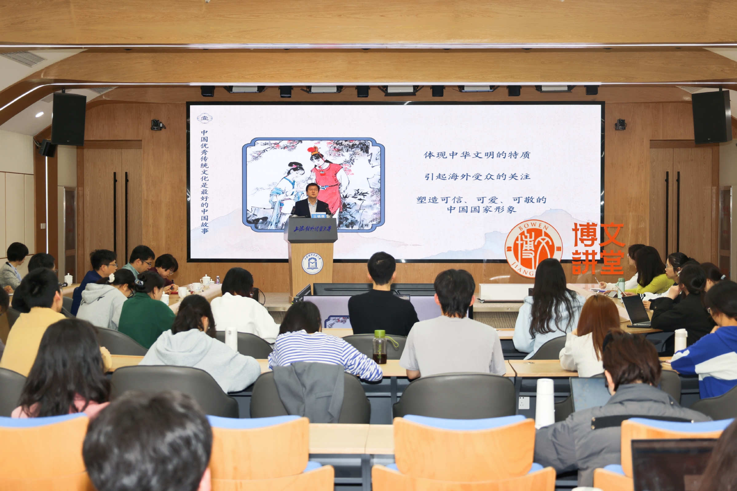 为提高学生跨文化交流与国际传播能力,4月2日下午,2024年第3期博文讲堂在松江校区图文信息大楼213会议室顺利举行。中国互联网新闻中心党委书记、总编辑王晓辉受邀作主题为“中华优秀传统文化的翻译与传播”的讲座。讲座由国际商务外语学院院长温建平主持。