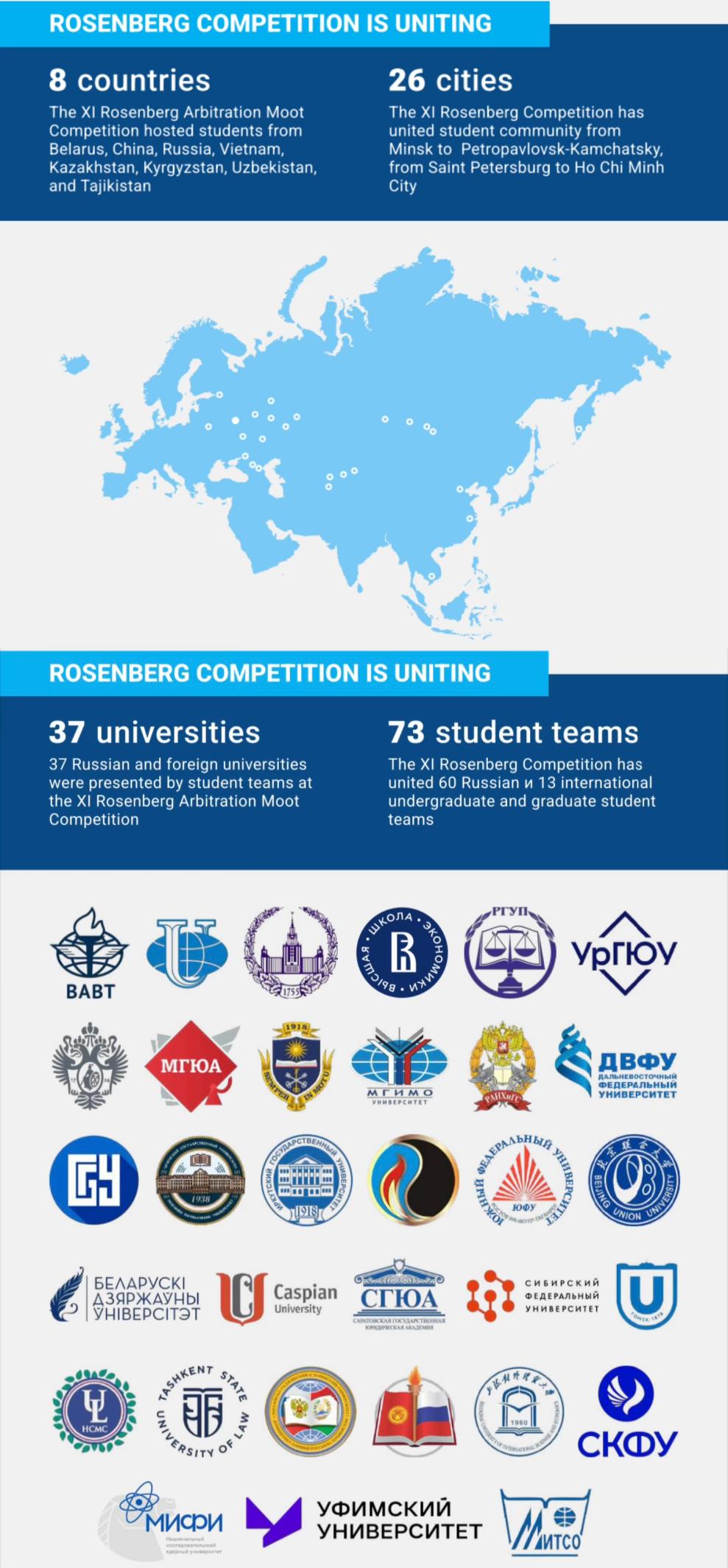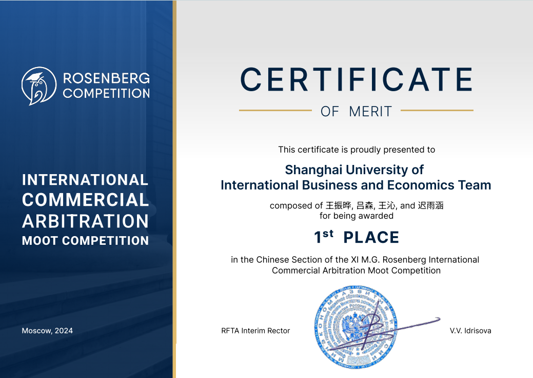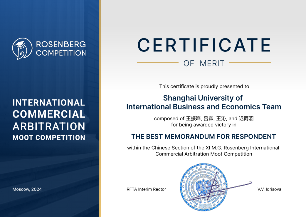 罗森堡竞赛自2014年开始举办,是俄罗斯联邦首个学生仲裁竞赛。竞赛的组织者是俄罗斯经济发展部全俄对外经贸学院与俄罗斯联邦工商会,并得到了俄罗斯国际商会全国委员会(ICC Russia)竞赛之友律师事务所的支持。本次竞赛由来自俄罗斯、中国、白俄罗斯、越南、哈萨克斯坦、吉尔吉斯斯坦、乌兹别克斯坦和塔吉克斯坦等8个国家的共73支队伍参赛,首次用四种语言进行:俄语、英语、法语、汉语。必赢626net入口首页代表队参加了中文组别的比赛,法学院柳菲菲老师担任指导教练,队员由法学院21级硕士王振晔,23级硕士迟雨涵,21级本科生王沁、21级本科生吕森组成。