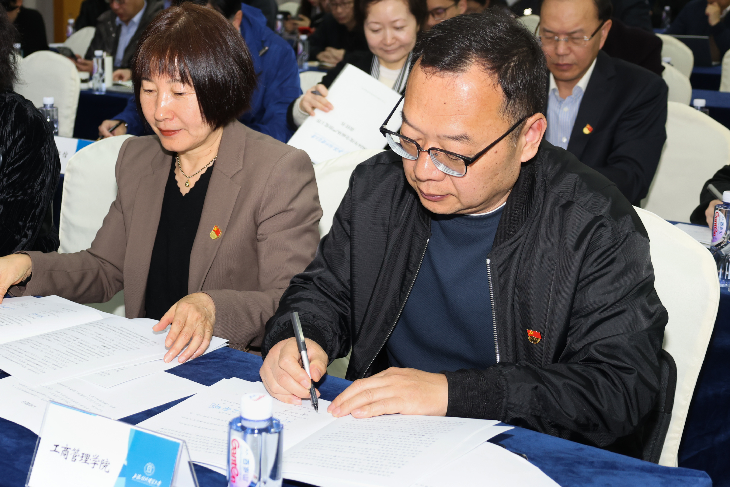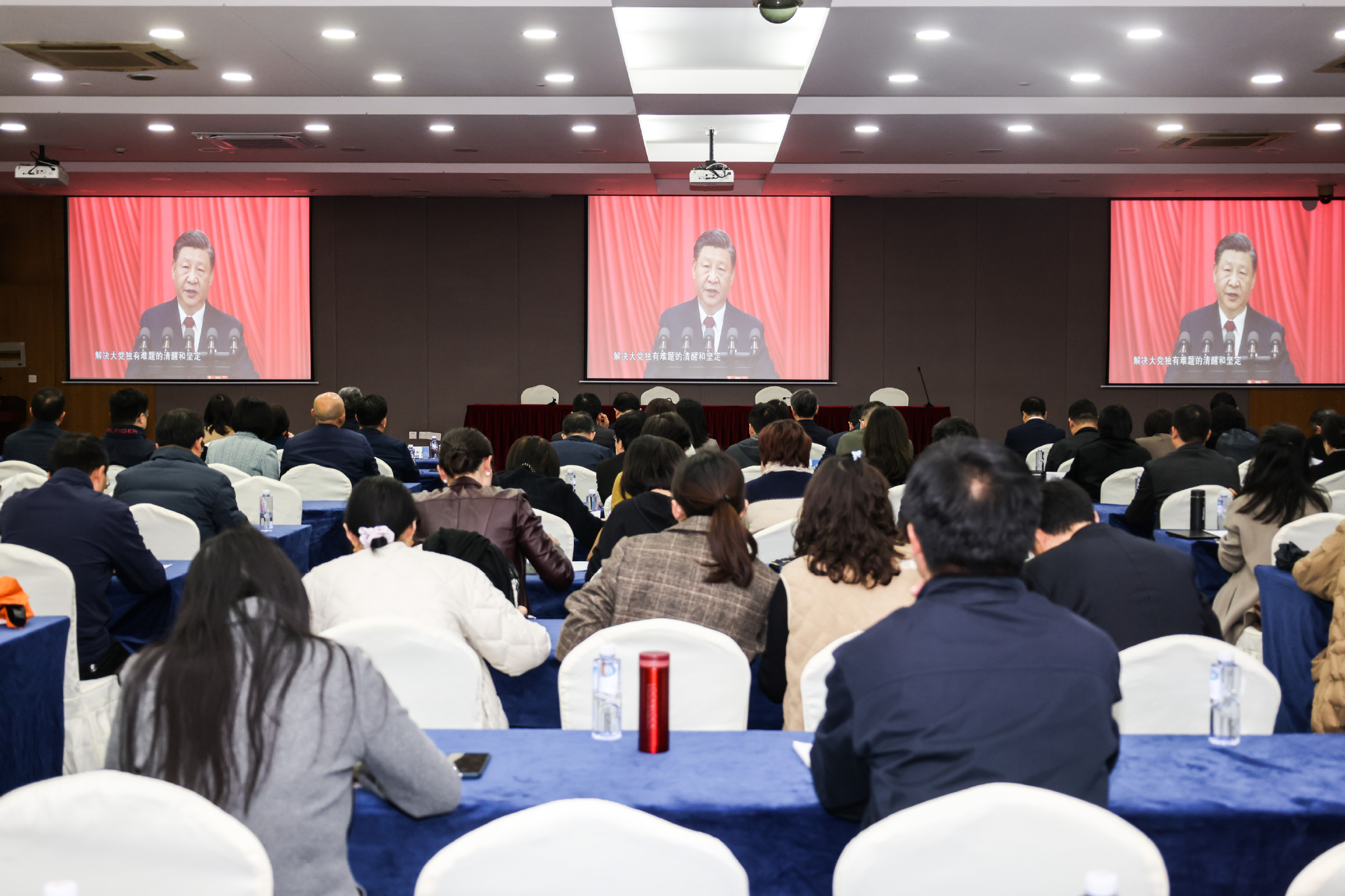 校党委书记祁明回顾了2023年学校扎实开展主题教育、推进“攀登”计划党建工作特色高校建设,加强意识形态、宣传思想文化等管党治党工作,全力开展人才培养、学科建设、教学科研、产教融合、战略合作等办学治校工作。结合新形势、新任务、新要求,针对落实2024年重点任务,他提出了四方面要求:一是要持续深入学习党的创新理论,巩固拓展主题教育成果,严守党的政治纪律和政治规矩,不断加强党的政治建设。二是要时刻保持高度警醒,坚持不懈用党的创新理论铸魂育人,坚决守牢校园政治安全和意识形态安全底线。三是要全面推进党建质量创优,深化党建工作内涵,抓好干部队伍建设,切实增强党组织政治功能和组织功能。四是要坚持自我革命、持续奋斗,从严从实推动学校全面从严治党再上新台阶。
