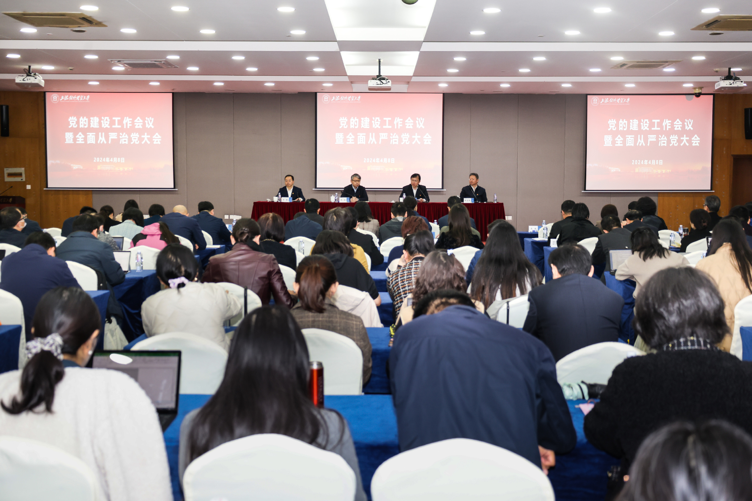 4月8日上午,学校在松江校区图文信息楼526会议室召开党的建设工作会议暨全面从严治党大会,深入贯彻党的二十大精神和习近平总书记关于党的自我革命的重要思想、考察上海重要讲话精神,全面落实市委、市教卫工作党委系统全面从严治党工作要求,总结回顾过去一年学校党的建设和全面从严治党工作,部署安排2024年度重点任务。全体校领导、党的建设工作领导小组成员、师德建设领导小组成员、全体中层领导人员、二级单位党组织纪检委员、教工党支部书记、系(专业)主任、学位点负责人、党风廉政监督员(特邀监察员)等参加会议。
