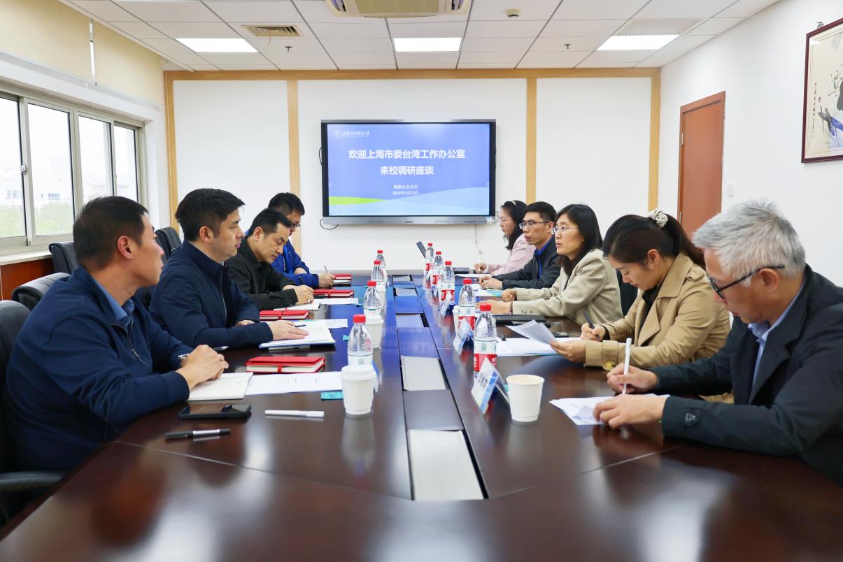 4月12日下午,上海市委台湾工作办公室(简称“市台办”)副主任阳礼华一行来访松江校区,调研学校对台工作。副校长姜秀珍出席活动。会议由学校港澳台办公室副主任张水辉主持。