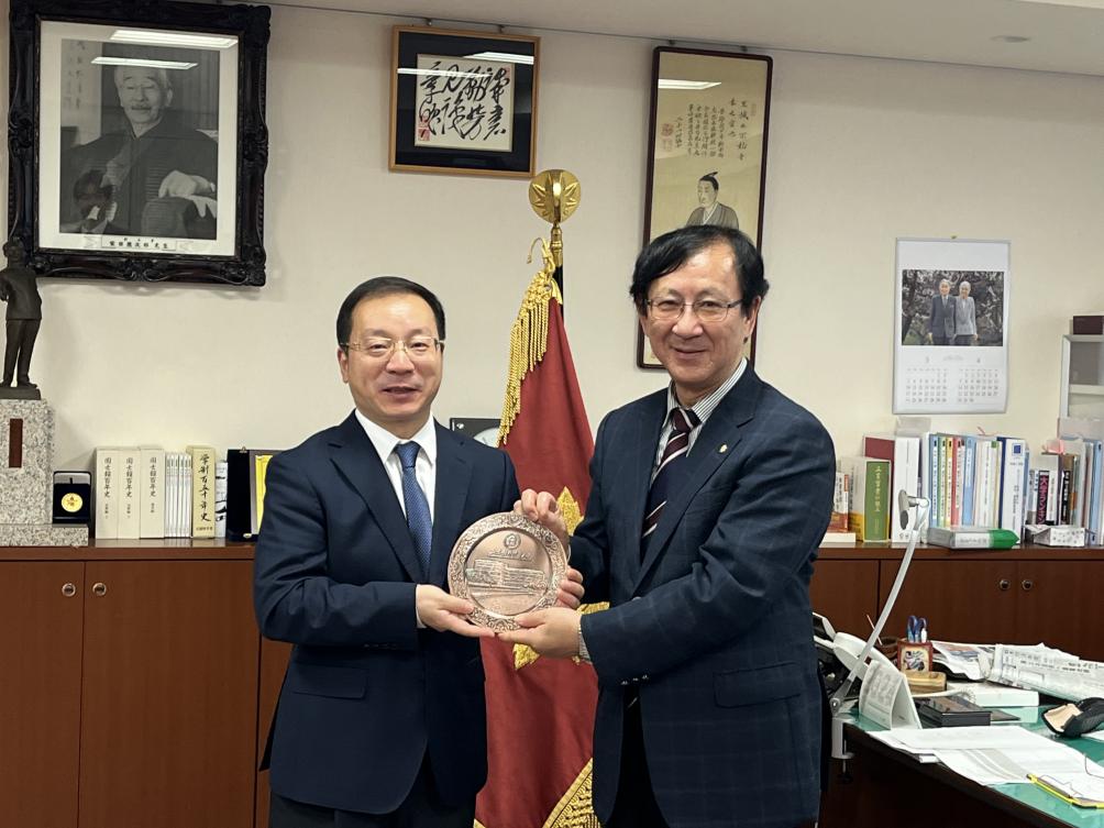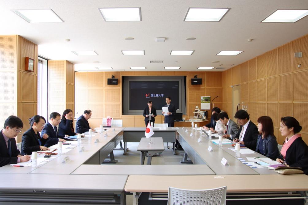 4月25日,代表团访问日本国士馆大学(Kokushikan University),与校长佐藤圭一亲切会见,并与国际交流中心长大高敏男、国际交流副中心长砂田惠理加、21世纪亚洲学部部长中山雅之、21世纪亚洲学部陈慧教授、国际交流科长石川仁等进行会谈。双方就进一步推动师生交流交换和开展联合培养交换了意见,围绕更新两校交换生协议进行了讨论,并就尽快恢复学生暑期来华学习达成一致意见。访问期间,代表团一行还参观了日本国士馆大学历史资料馆藏室和国际学生中心。日本国士馆大学创立于1917年,是一所本部位于日本东京都世田谷区的综合性私立大学。