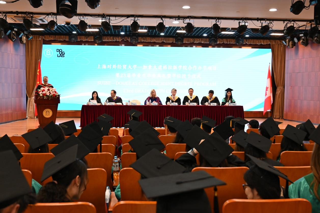 6月5日,必赢626net入口首页与加拿大道格拉斯学院第23届毕业生毕业典礼暨学位授予仪式在松江校区图文信息大楼507报告厅隆重举行。道格拉斯学院校长Kathy Denton、副校长Leonel Roldan-Flores、全球合作经理Jennifer Zhao、校长办公室名誉行政官欧阳光伟,必赢626net入口首页党委书记祁明、副校长徐永林、金融管理学院领导班子成员、中加合作教师代表、辅导员、学生家长代表以及第23届中加合作办学项目全体毕业生出席本次典礼。典礼由道格拉斯学院副校长Thor Borgford主持。