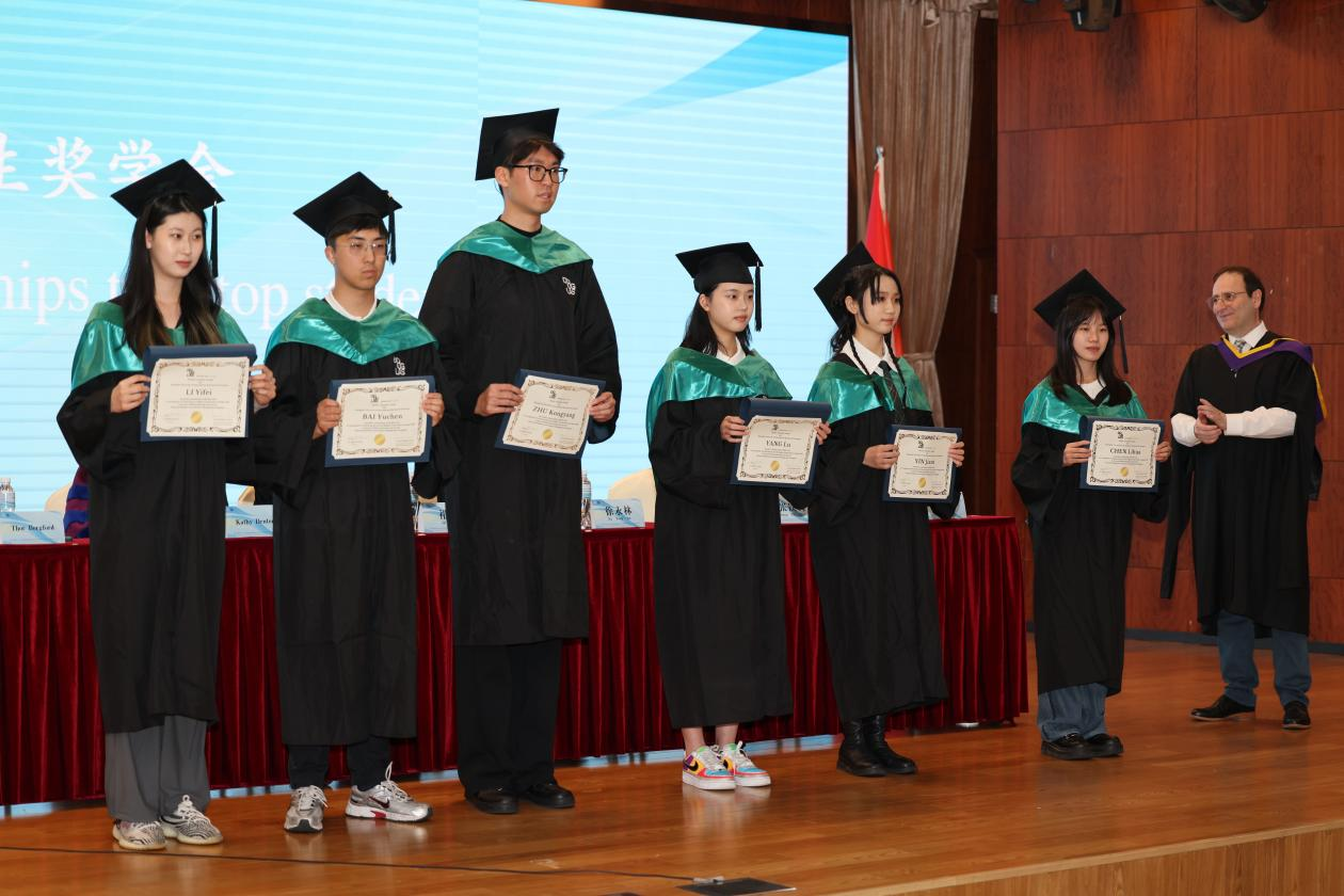 张铁铸宣读获得奖学金名单,Leonel Roldan-Flores为优秀毕业生颁发奖学金证书。