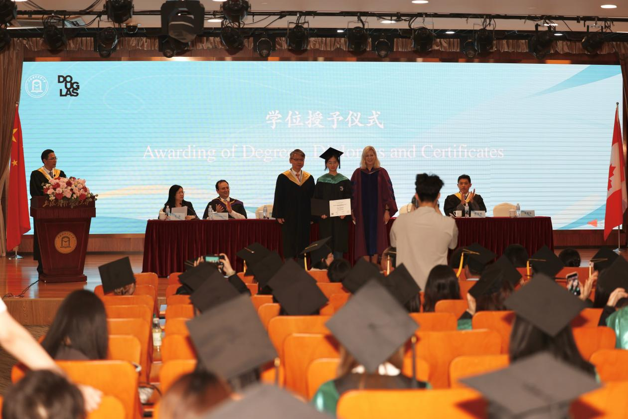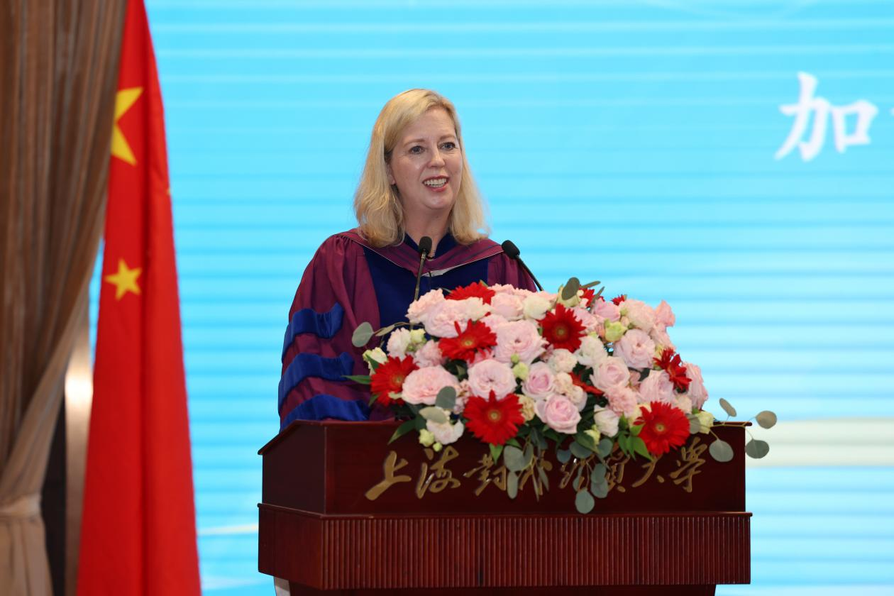 Kathy Denton为毕业生们献上祝福。她对全体毕业生表示祝贺,对同学们取得的成就表示赞许。她表示,中加合作项目的课程结构和全英语学习对同学们来说极具挑战,但所有人都为自己设定了非常高的标准并出色地完成了目标。她强调了合作项目在同学们求学路上的重要意义,希望同学们能够在将来选择职业时,牢记在学校所学所获,对新的机会保持开放的态度,充分挖掘自己的潜力实现伟大成就。