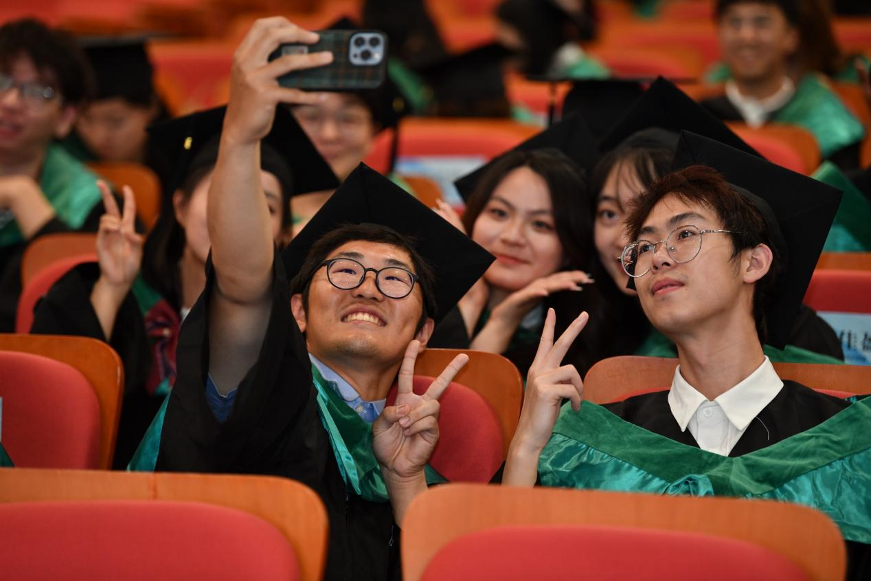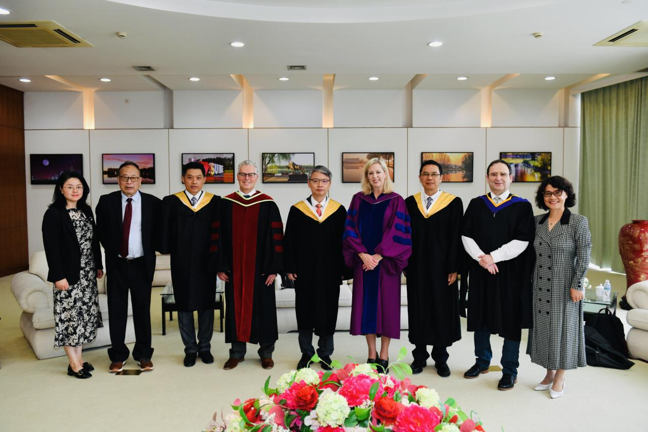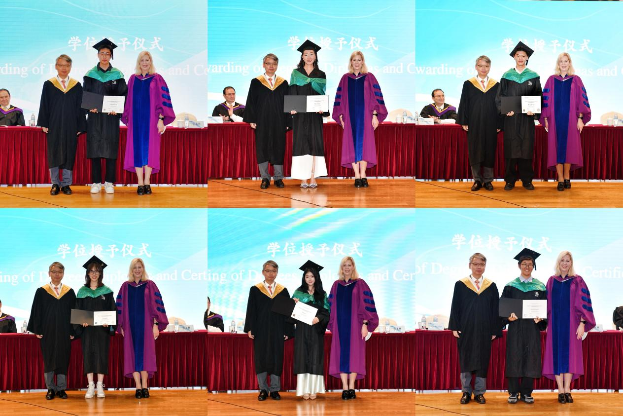 在学位授予仪式上,徐永林宣读毕业生名单,Kathy Denton与祁明为各位毕业生颁发文凭、拨穗并合影留念。