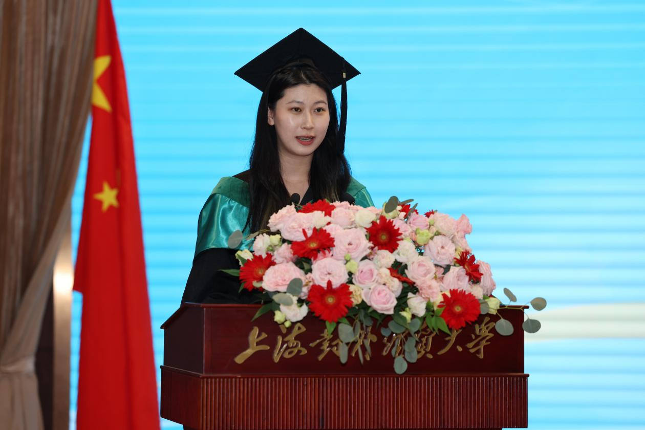随后,李奕霏同学作为优秀毕业生代表发言,她表达了对老师、家人以及朋友的感谢。她鼓励全体同学大胆尝试自己想走的道路,趁年轻去尝试、去碰撞、去奔赴。