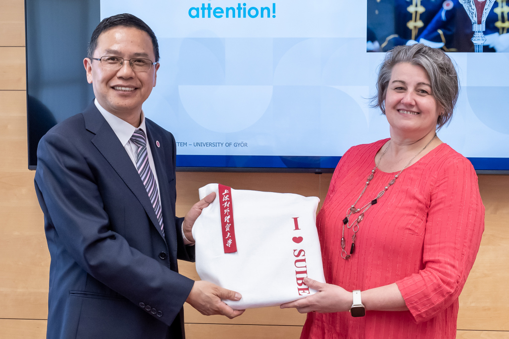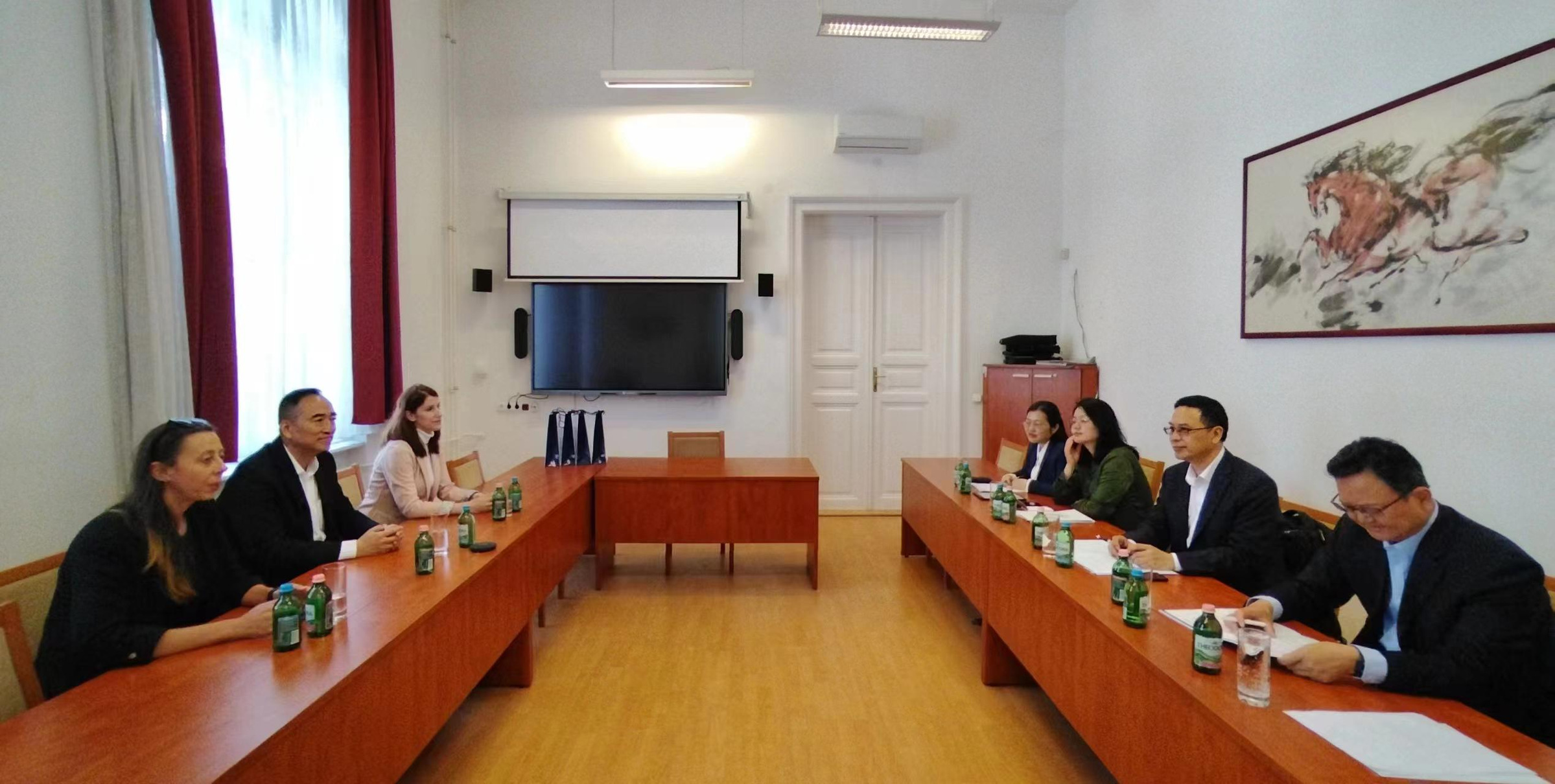 5月17日上午,代表团走访了匈牙利塞切尼·伊什特万大学(Széchenyi István University),与该校分管国际事务及战略关系的副校长Eszter Lukác博士,经济与管理学院院长Sándor Remsei博士,法律和政治科学学院副院长László Knapp博士,人文、教育和社科学院副院长Júlia Szőke博士,校长代表Mihályka Lívia教授,大学创新园区负责人Tamás Kolossváry博士,国际处负责人Márta Mészáros女士及相关工作人员进行了座谈。双方分别介绍了各自学校的基本情况及国际化办学战略,并围绕金融、法学、语言教育、留学生培养、创新创业、学生职业生涯发展等领域进行了深入研讨,并就签署校际合作协议进行了前期讨论。座谈前,代表团还参观了该校的主校园及相关教学资源。塞切尼·伊什特万大学始建于1968年,它坐落在匈牙利传统教育重镇杰尔市,是一个拥有学士、硕士和博士学位教育的国立综合性大学。