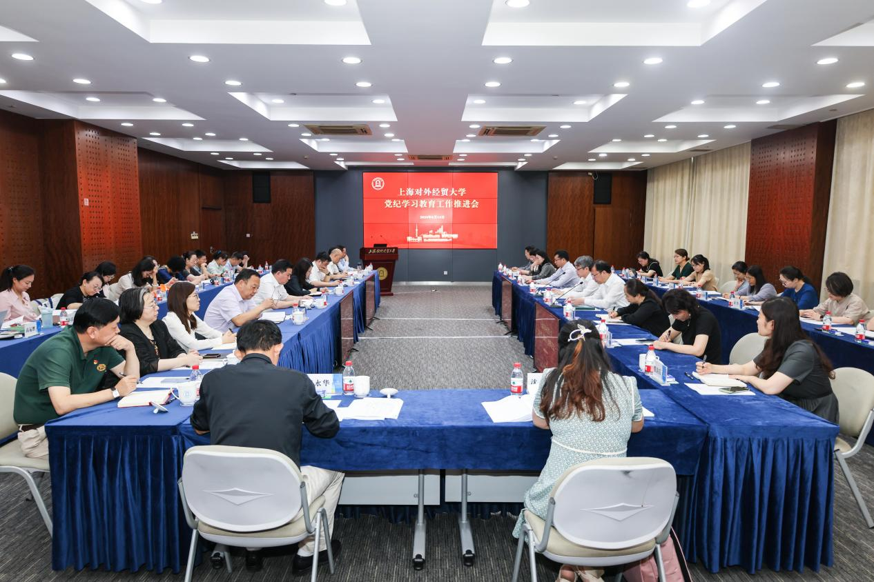 会议强调,深入开展党纪学习教育,要把学深悟透习近平总书记关于全面加强党的纪律建设重要论述贯穿党纪学习教育始终,准确把握党纪学习教育的目标要求和学纪、知纪、明纪、守纪的内涵实质,推动党纪学习教育融入日常抓在经常,把他律要求转化为内在追求。要把维护党中央权威和集中统一领导作为最根本的政治纪律和政治规矩,坚定拥护“两个确立”、坚决做到“两个维护”,做政治上的明白人,把遵规守纪刻印在心,用党章党规党纪约束言行,真正把纪律规矩转化为政治自觉、思想自觉、行动自觉。要抓好加强警示教育,以案促学、以案说纪,持续深化整治形式主义为基层减负,聚焦突出问题靶向整治,进一步建立健全长效机制,让心存敬畏、手握戒尺真正成为日常自觉,营造良好干事创业环境。要扎实推动学校党纪学习教育走深走实,坚持两手抓两促进,把开展党纪学习教育同学习贯彻习近平总书记历次考察上海重要讲话和重要指示精神结合起来,同贯彻落实党中央决策部署、服务上海“五个中心”建设结合起来,把“小我”奋斗融入贸易强国、教育强国建设的“大我”之中,融入高校立德树人的根本任务中。