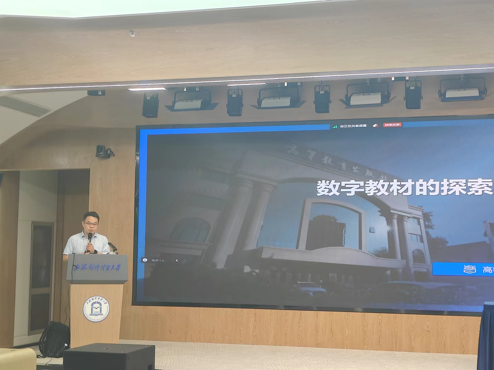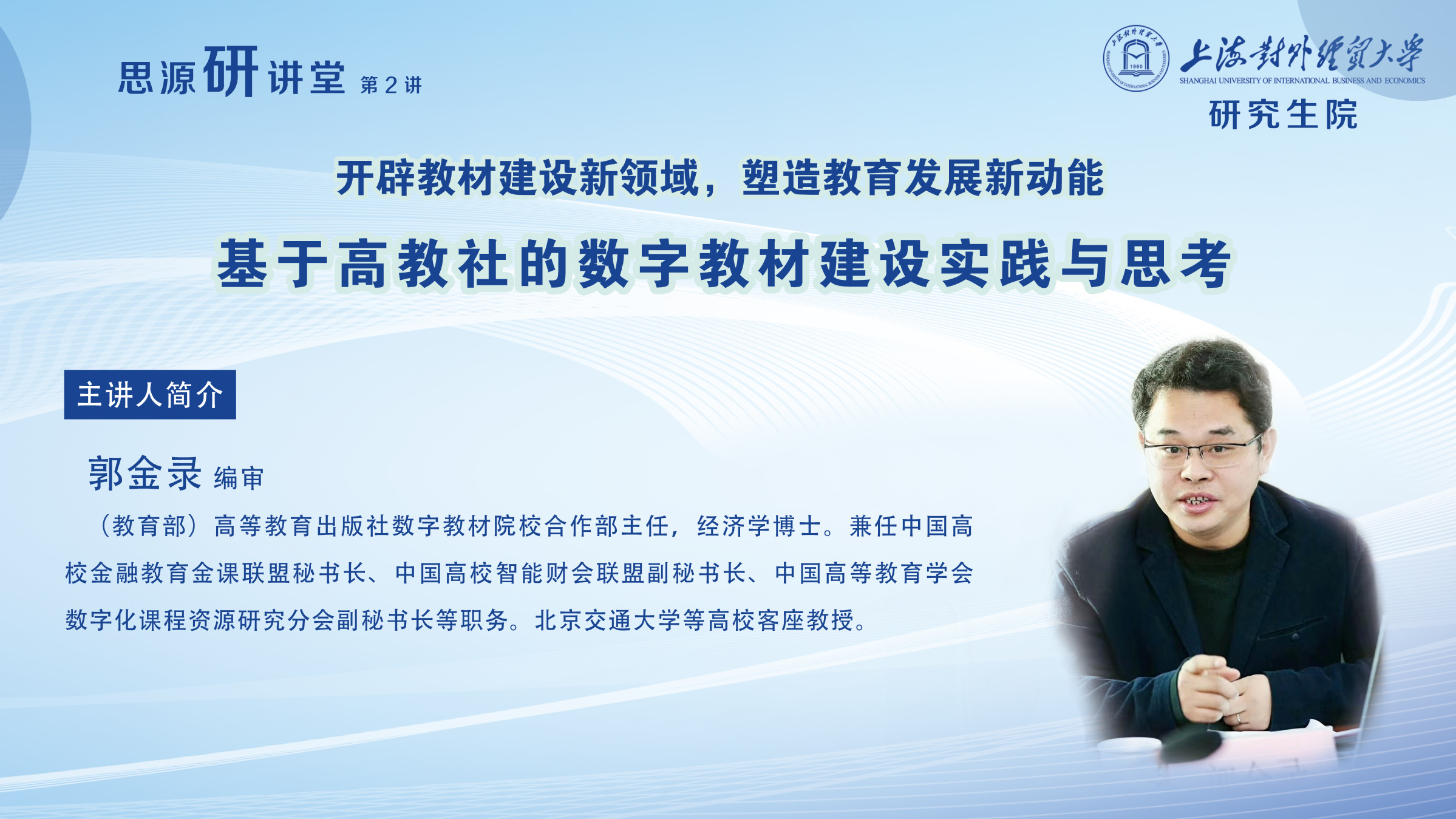 讲座中,郭金录阐述了数字教材建设的迫切性、必要性和重要性,指出数字教材的出现,不仅是教材形式的转变,更是一种教育生态的革新。他分别从政策指导与理论研究、建设进展与应用实践、技术赋能与未来展望、机构设置与服务方式等四个方面分享了数字教材建设的思考,并从高校教师建设数字教材的相关案例、学校承担的孵化角色和出版社可提供的多样性选择服务等角度对高校教师如何使用相关平台创建数字教材作了详细讲解。