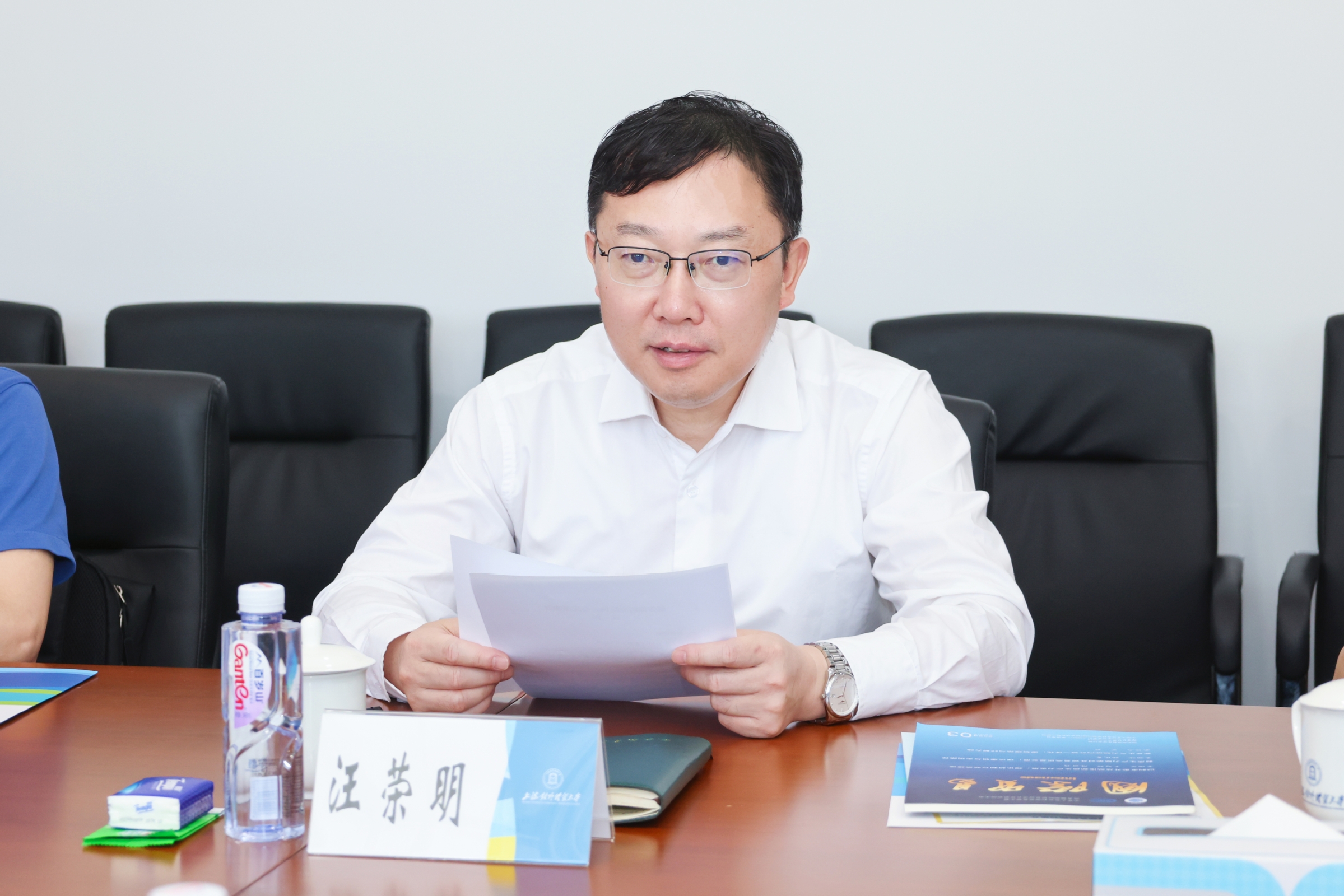 7月24日下午,商务部国际贸易经济合作研究院副院长俞子荣,媒体中心主任、《国际贸易》《国际经济合作》社长王建,《国际经济合作》主编郭语一行来校调研交流。校长汪荣明,校党委副书记、纪委书记章益国出席活动。座谈会由汪荣明主持。