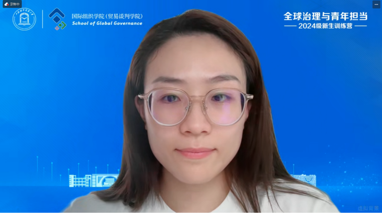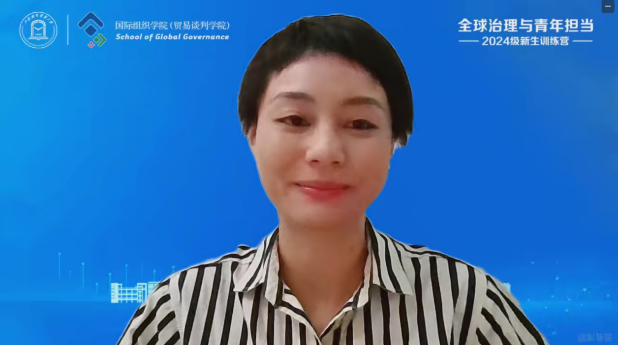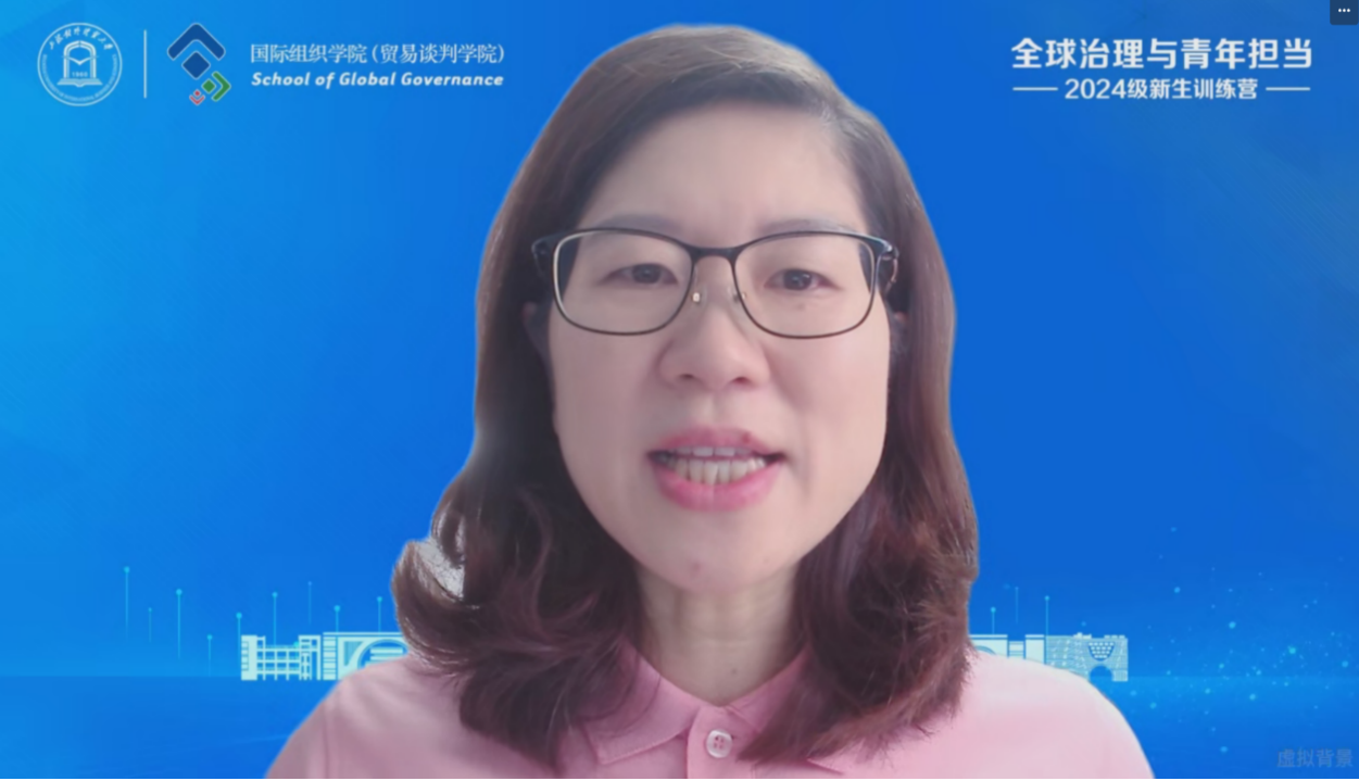 国际组织学院(贸易谈判学院)副院长徐昕、党委副书记程栋和国际经贸规则系赫璟老师分别通过专题讲座的形式,介绍了学院人才培养体系、生涯发展规划和奖助体系、海外交流和国际组织实习实训项目。