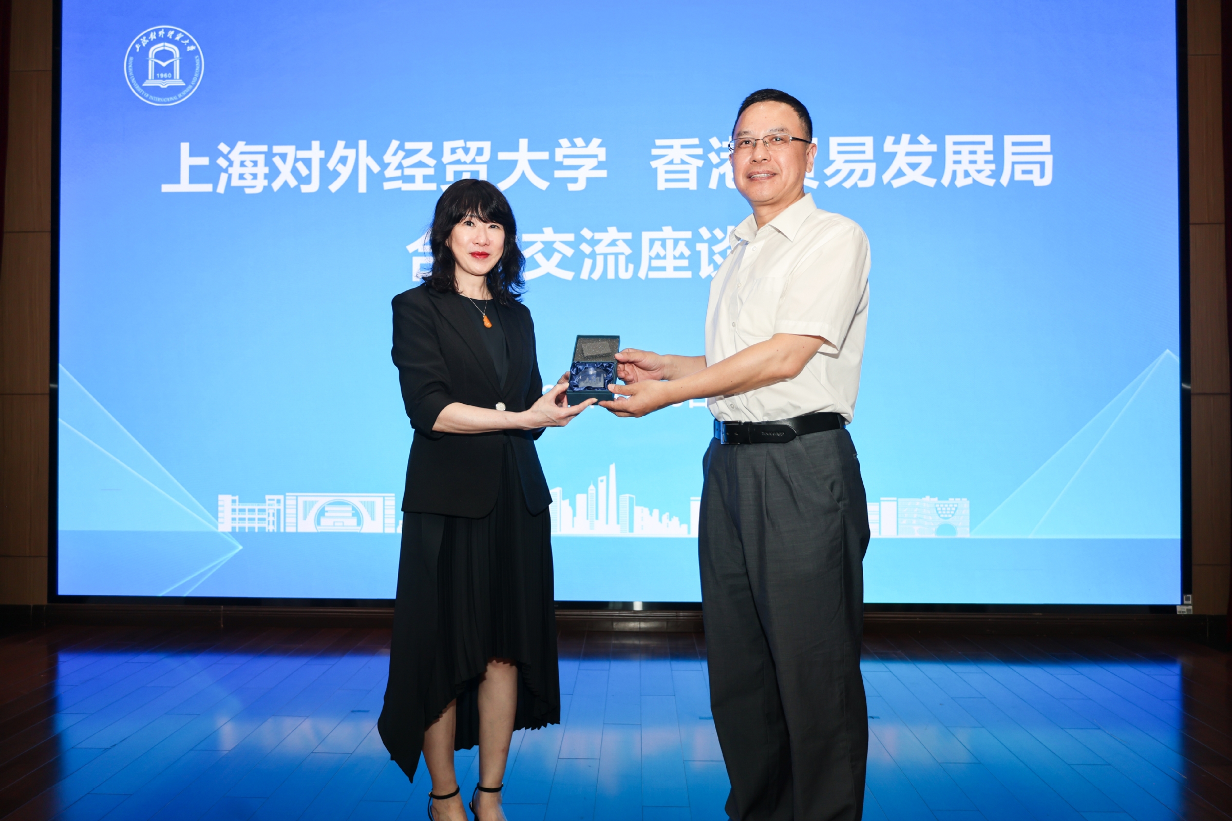 徐永林对范婉儿一行来校调研表示欢迎,对市商务委一直以来对学校的关心和支持表示感谢,并简要介绍了学校的有关情况。他表示,上海与香港,作为具有世界影响力的国际大都市、以及亚洲乃至世界的重要经济中心,一直以来在贸易、金融、航运、科创等领域发挥着重要作用。他期待能与香港贸易发展局共同围绕国家新一轮高水平对外开放和服务开放型经济发展,结合香港贸发局的研究优势和学校发展的传统特色,聚焦服务贸易和商贸服务等领域,深化沟通交流、推进务实合作,携手推动沪港两地经贸关系的进一步发展。